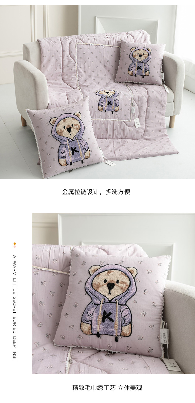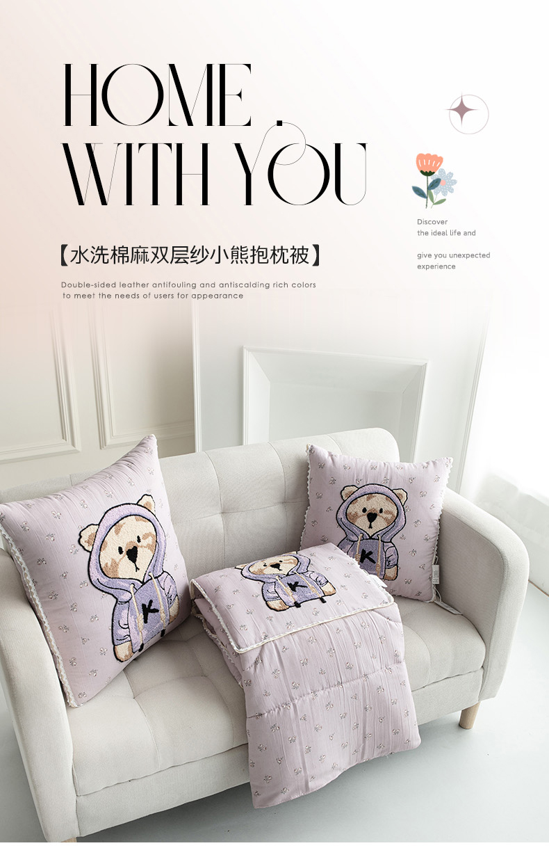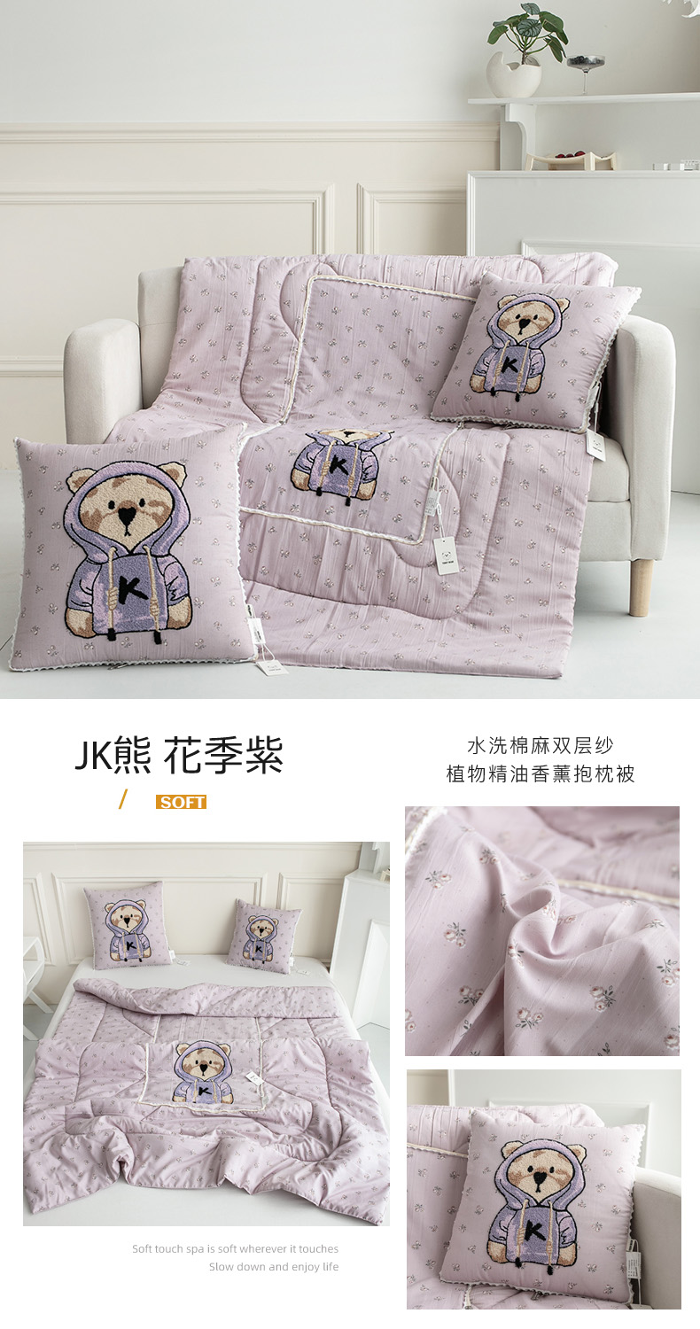商品名称:翰轩家居 2023新品水洗棉麻泰迪熊系列JK熊抱枕被-四季款 JK熊 花季紫
