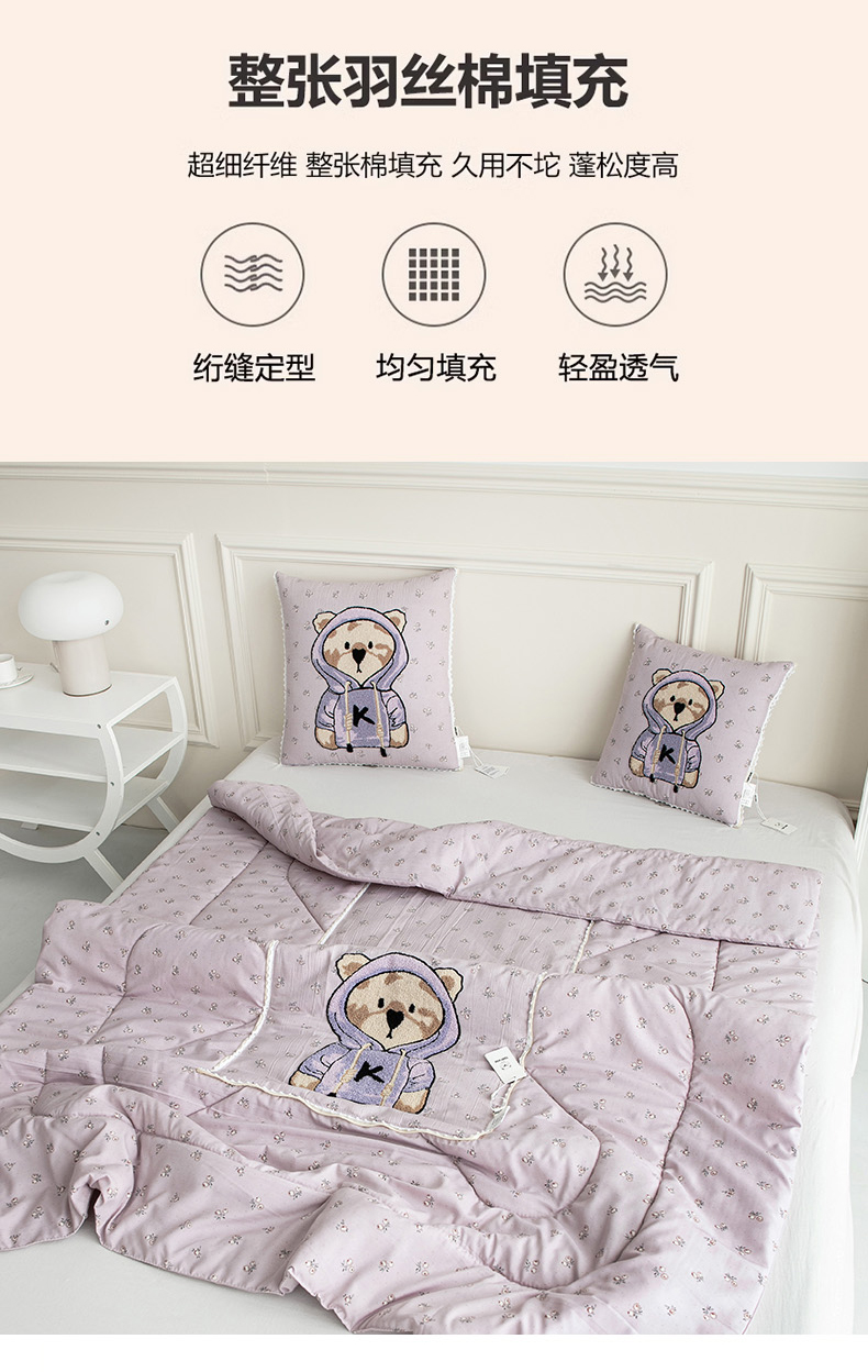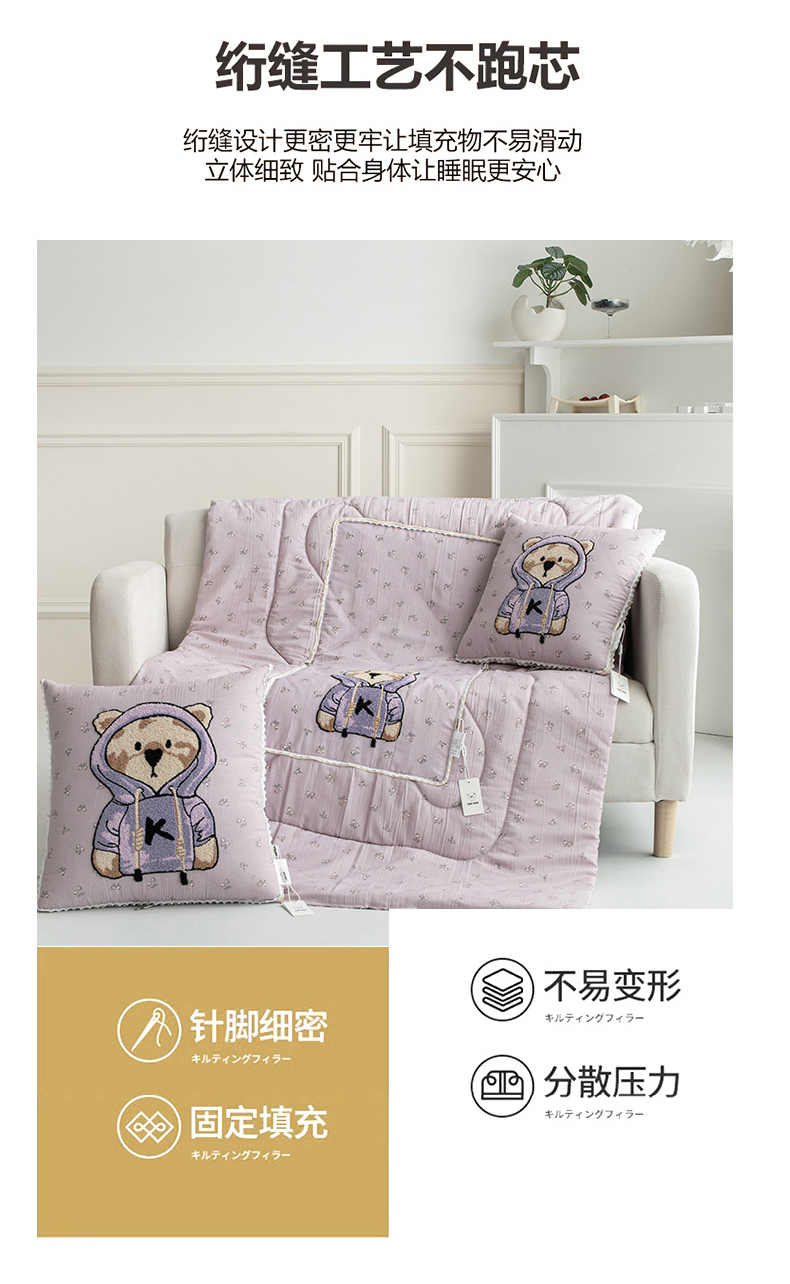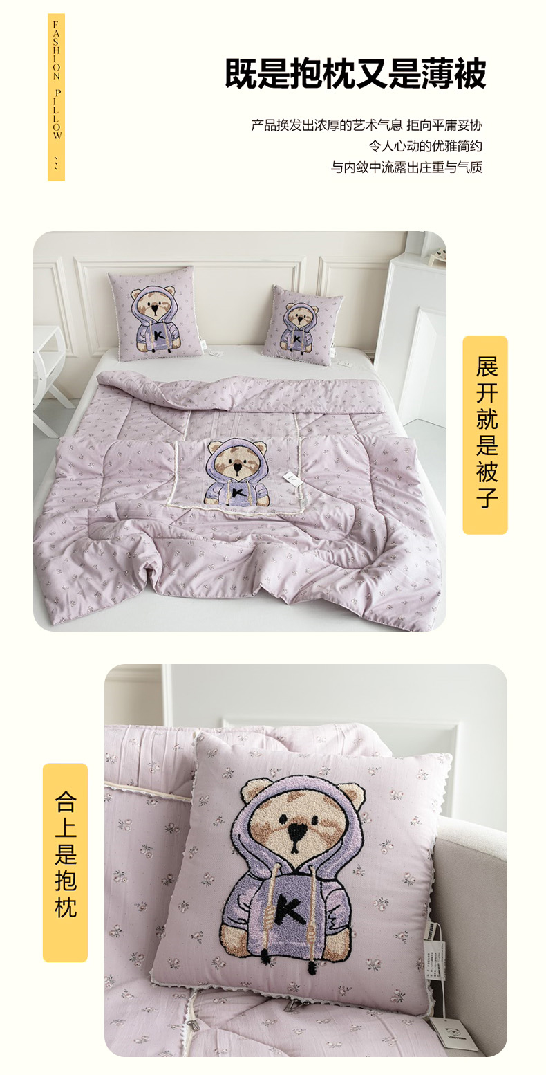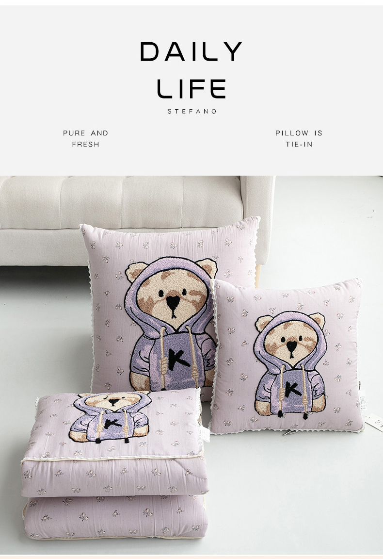 商品名称:翰轩家居 2023新品水洗棉麻泰迪熊系列JK熊抱枕被-四季款 JK熊 花季紫
