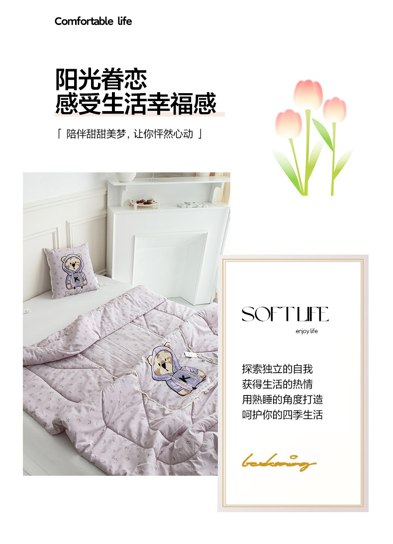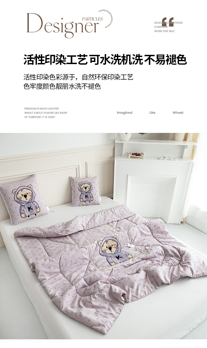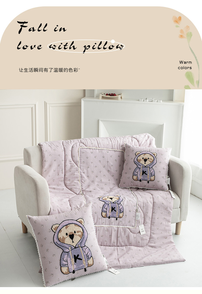 翰轩家居 2023新品水洗棉麻泰迪熊系列JK熊抱枕被-四季款 JK熊 花季紫