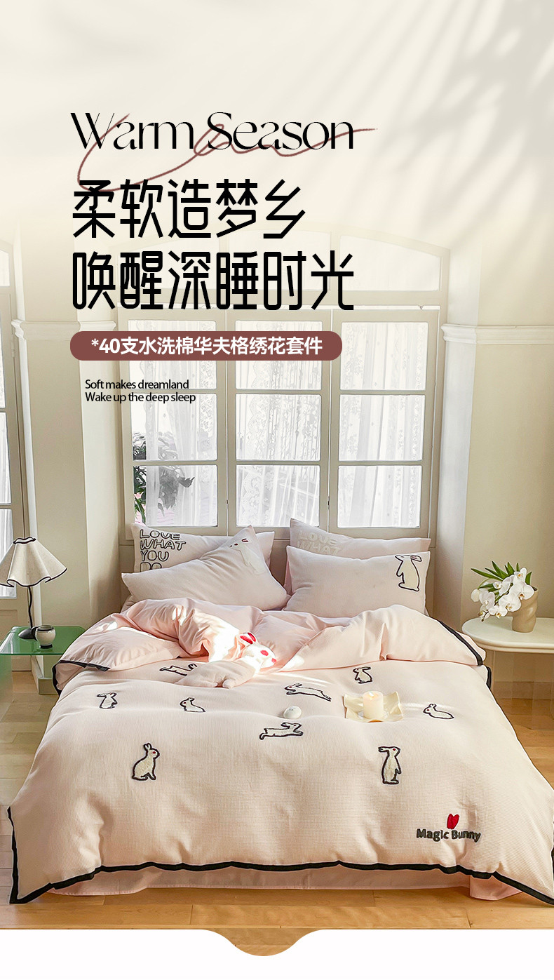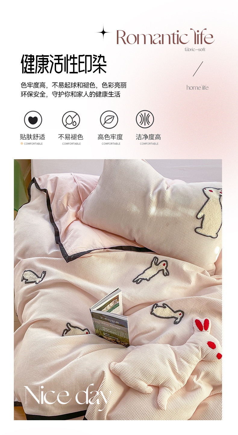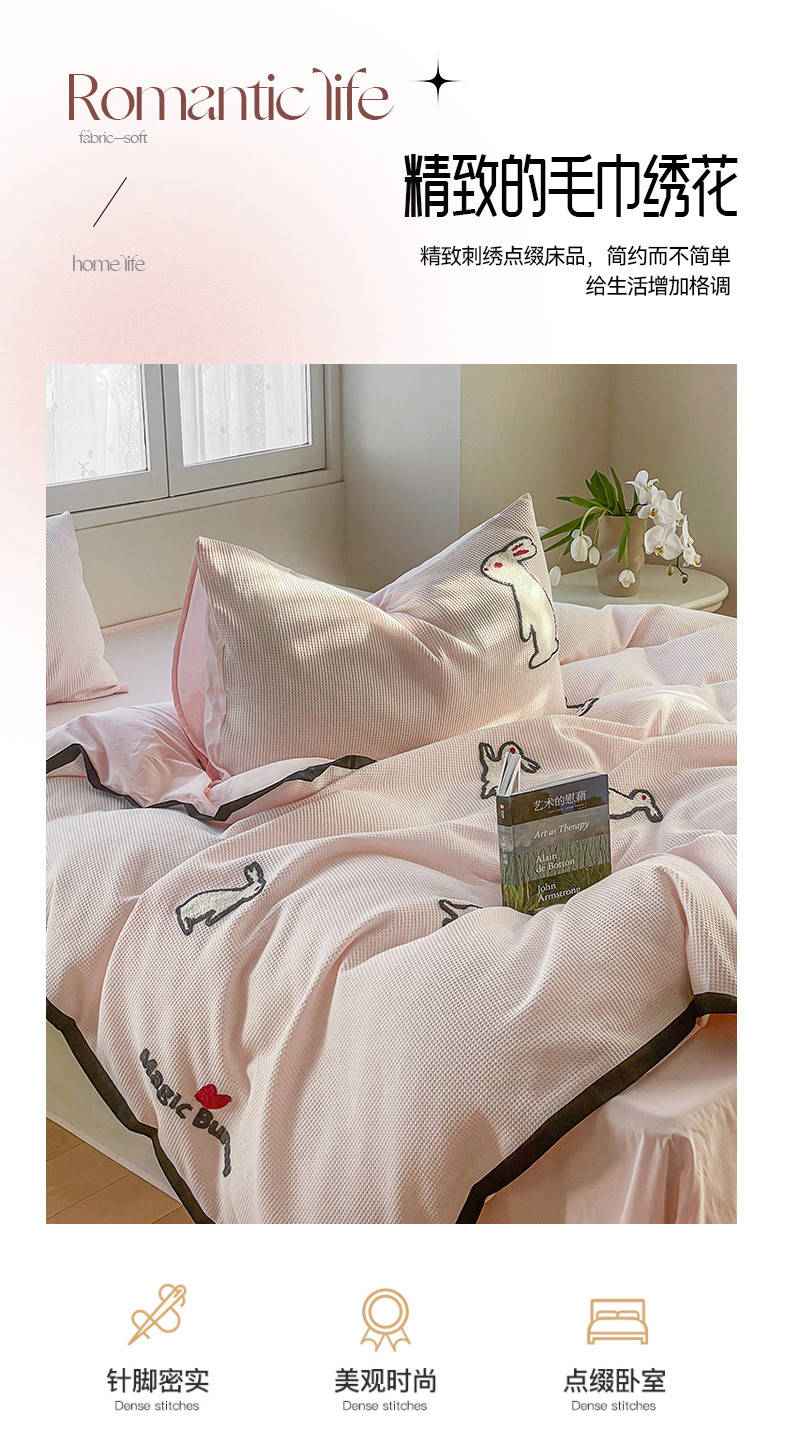 商品名称:(总)FOR TWO 2023新款水洗棉华夫格毛巾绣四件套-小可爱