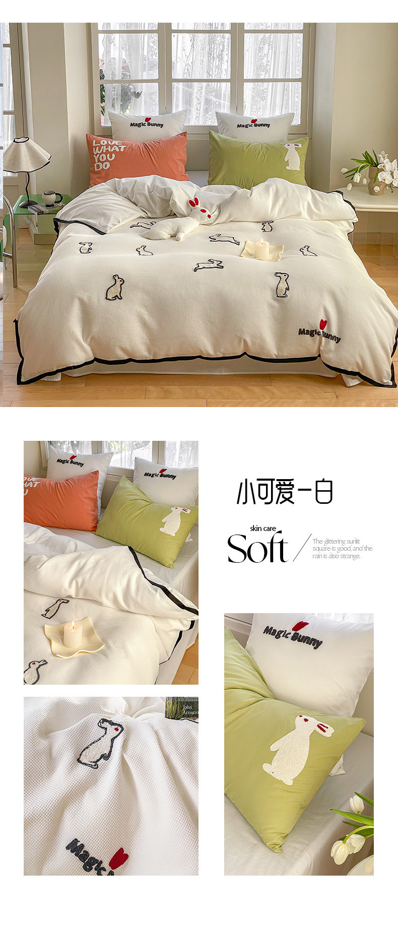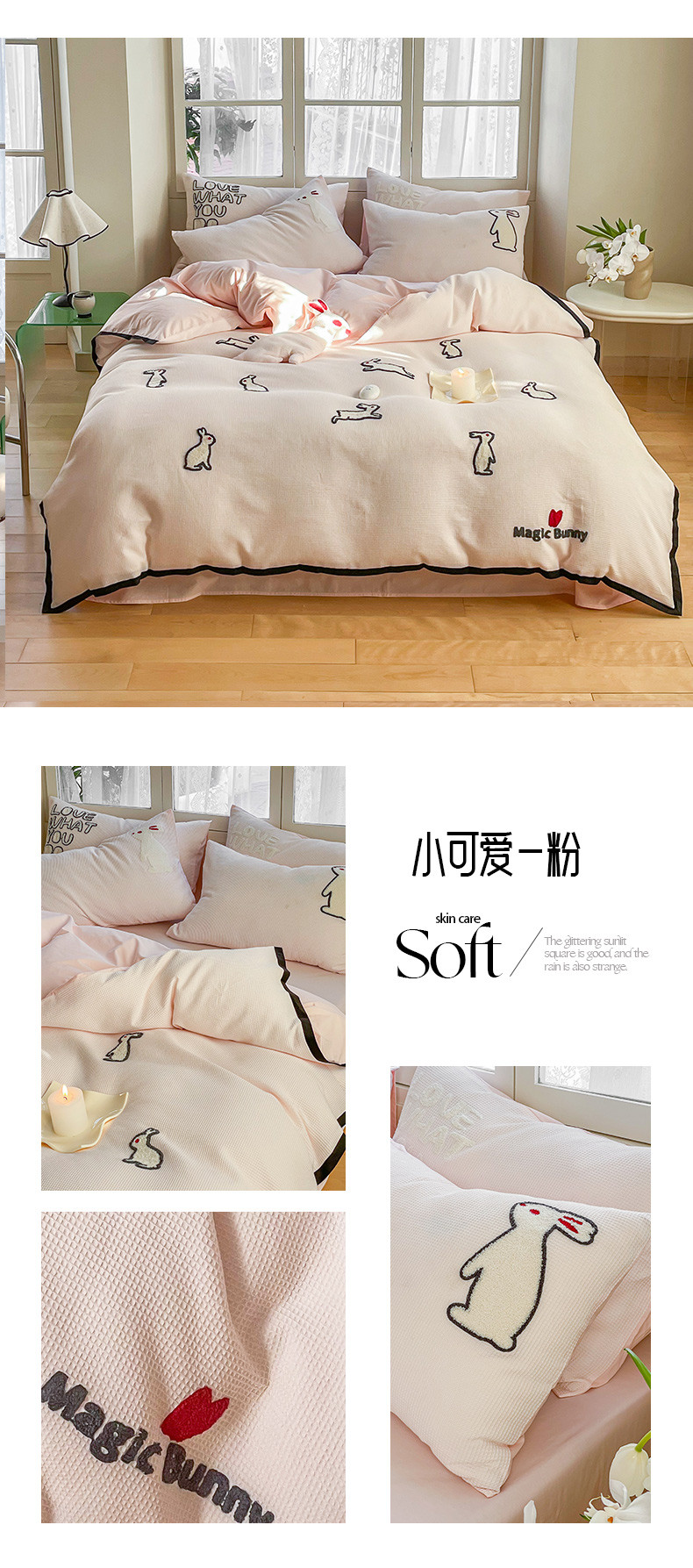 (总)FORTWO家纺原创设计(FOR TWO家纺) 2025新款230克牛奶绒绣花小清新四件套,咖啡猫,小萌兔