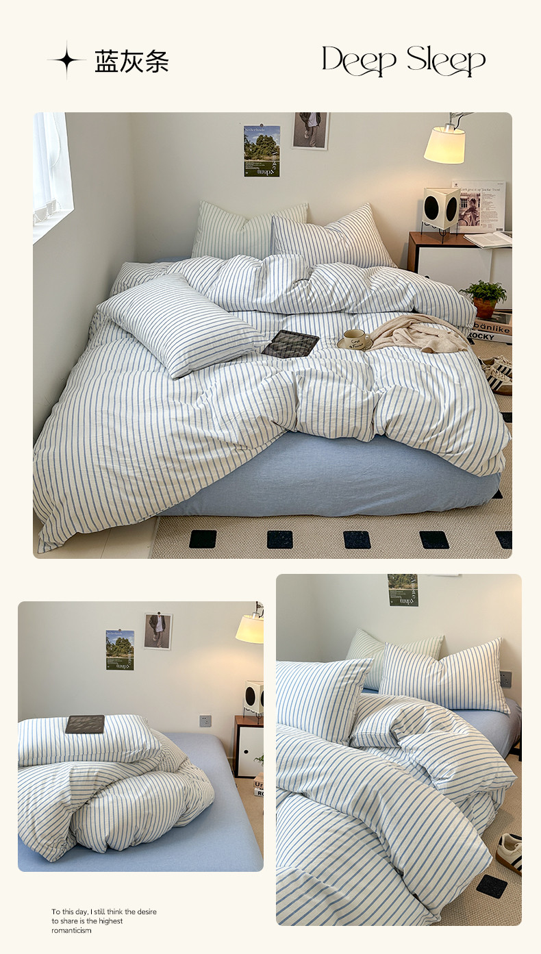 当前位置: 91家纺网 > 商品网购 > 床品套件 > 四件套 > 水洗棉四件套 > 玖弘 2023新款亲肤水洗条纹四件套 蓝灰条