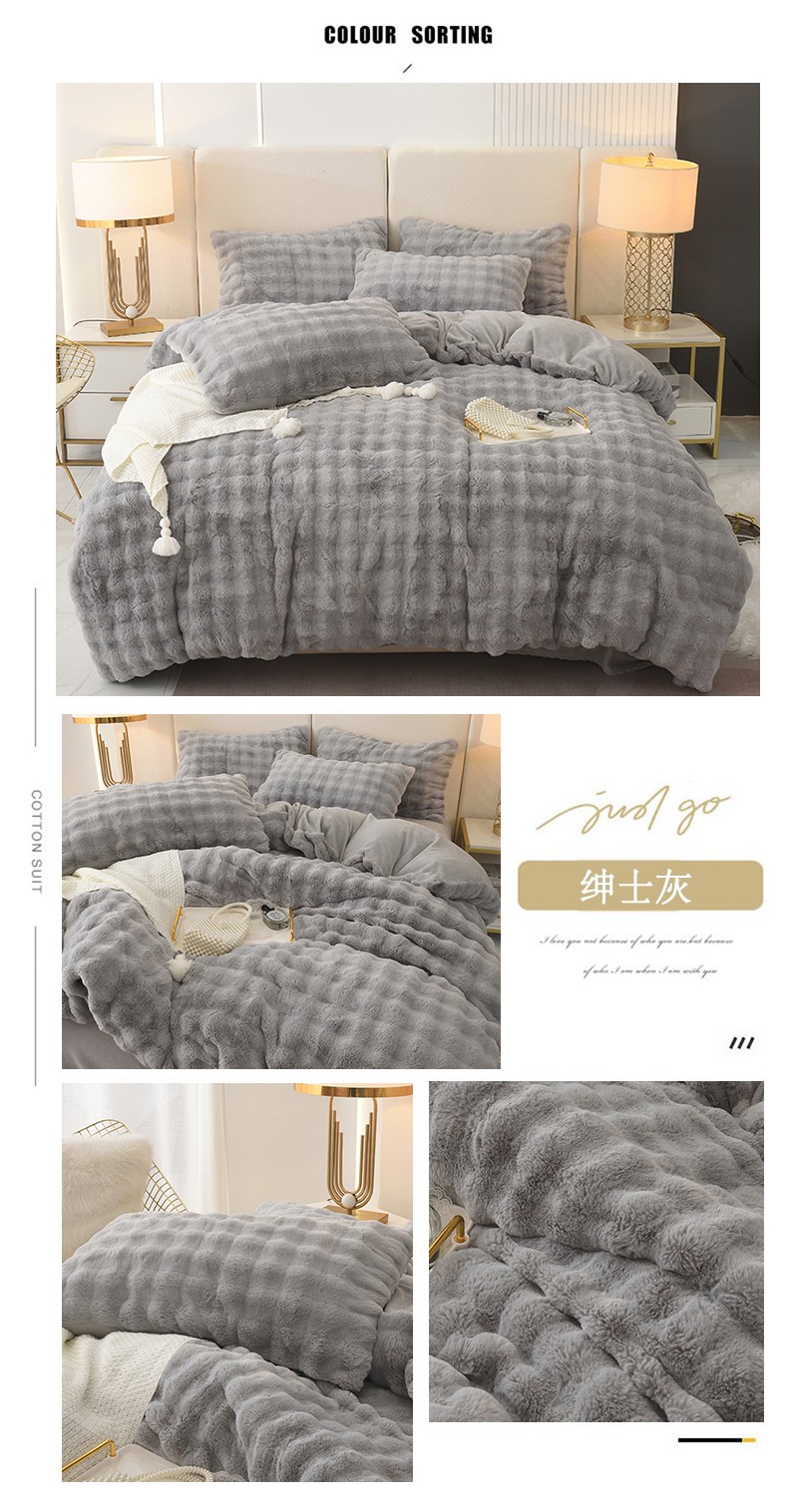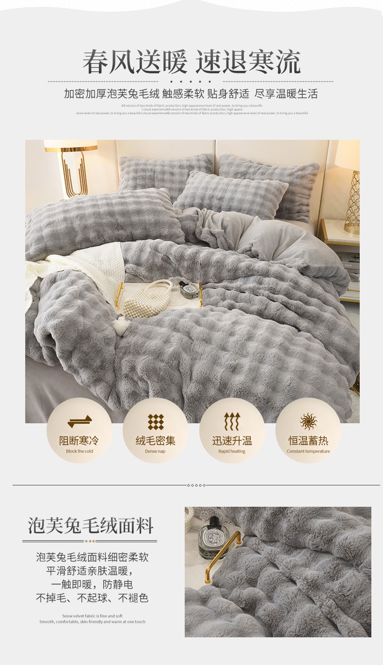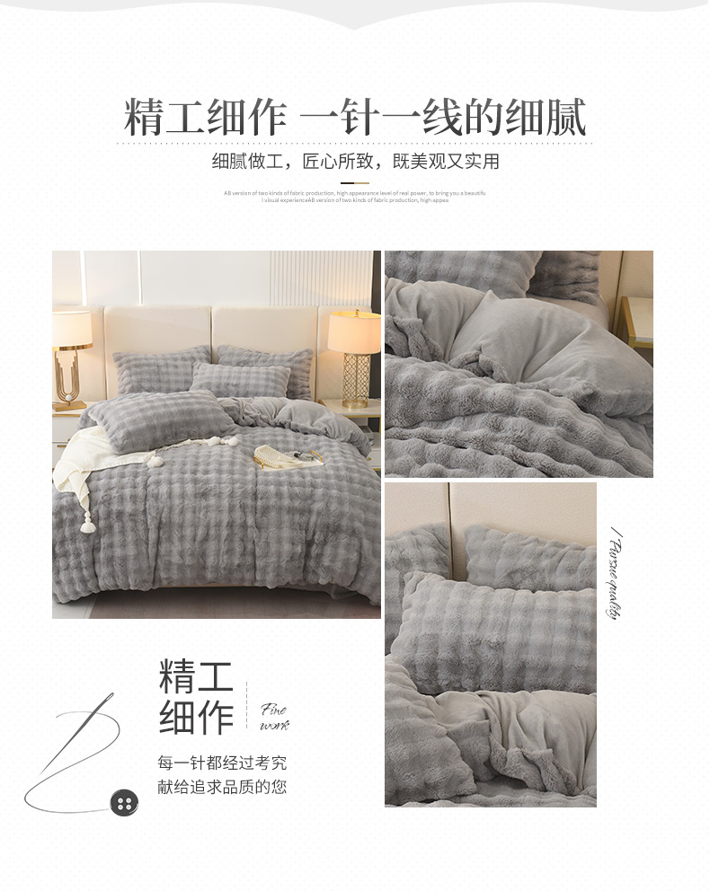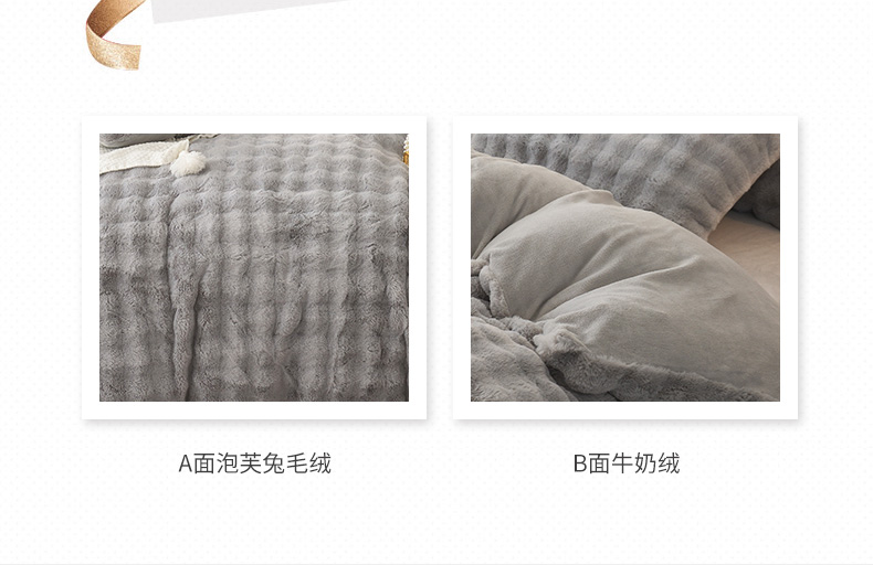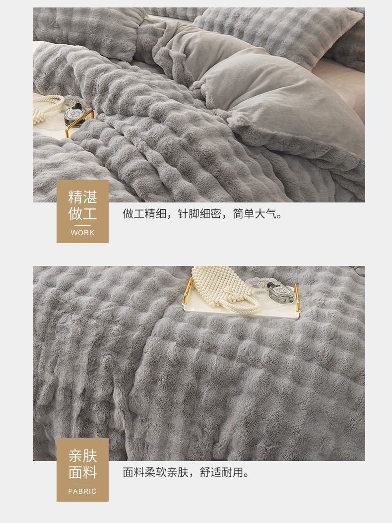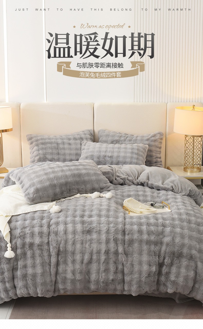 商品名称:启优家纺 2023新款泡芙兔毛绒四件套 绅士灰