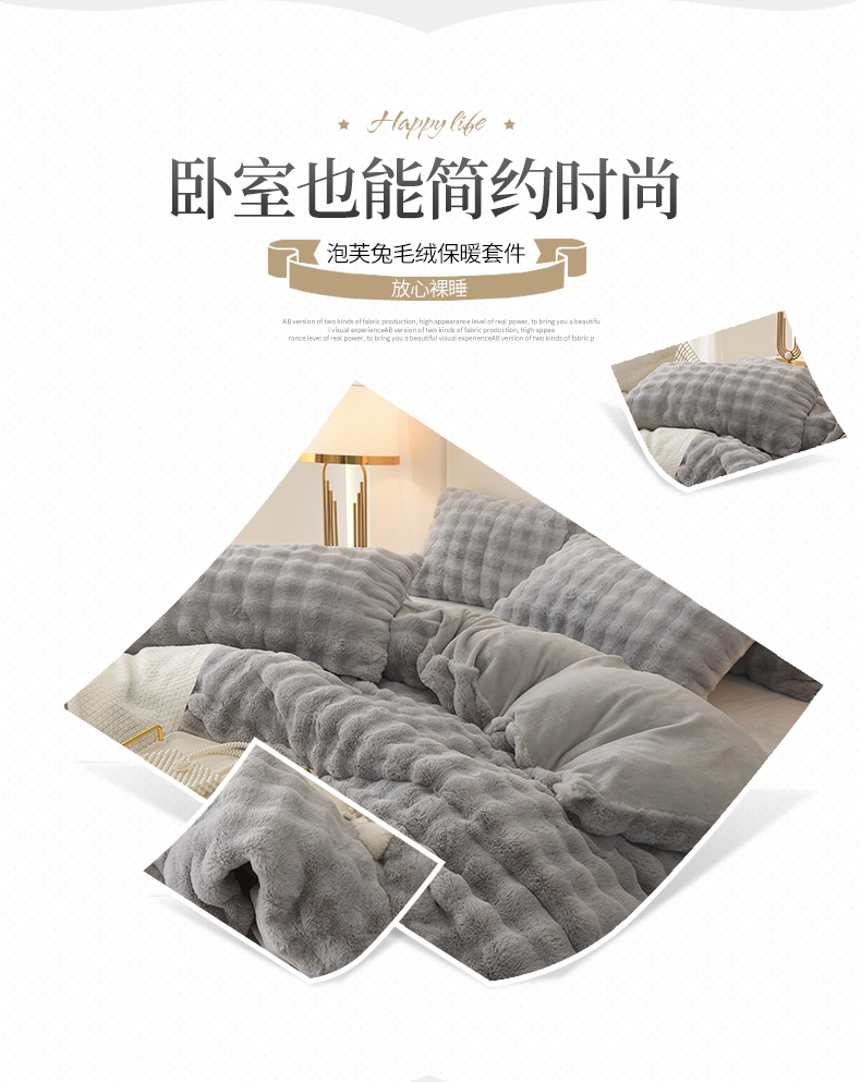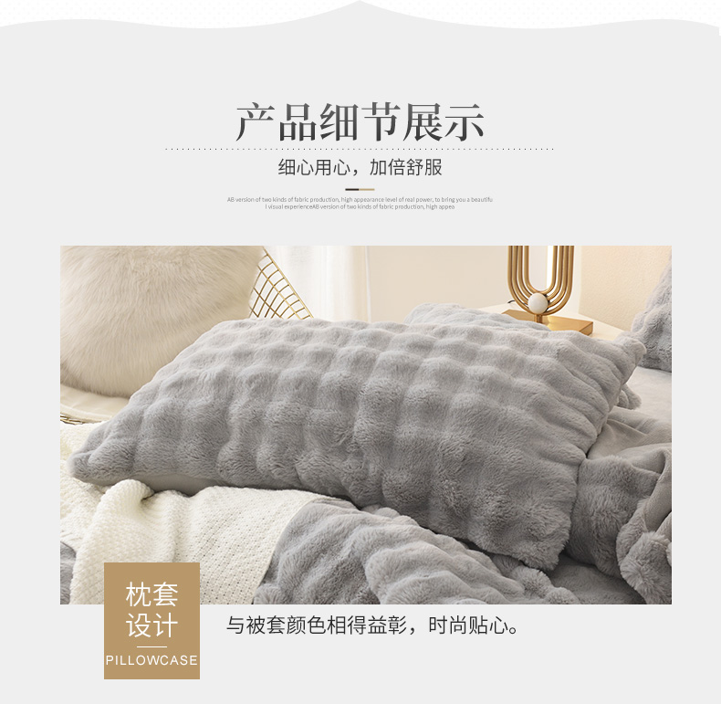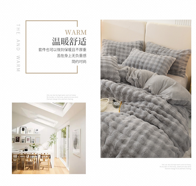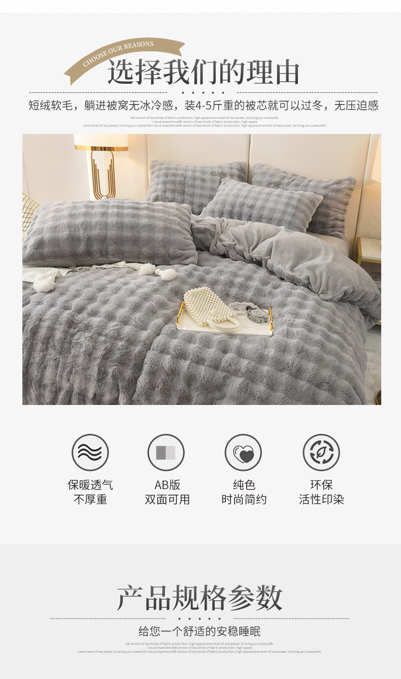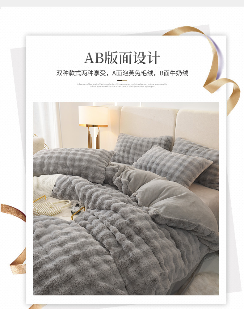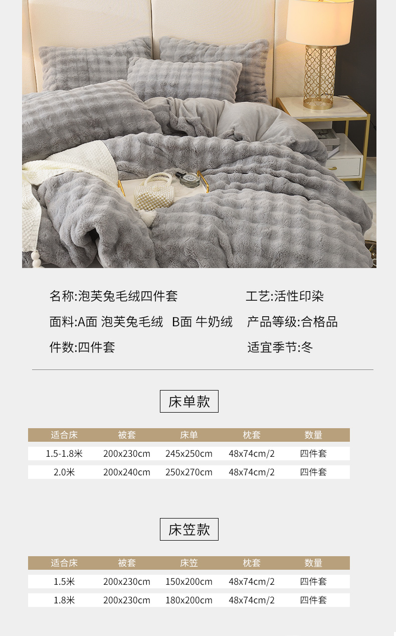 商品名称:启优家纺 2023新款泡芙兔毛绒四件套 绅士灰
