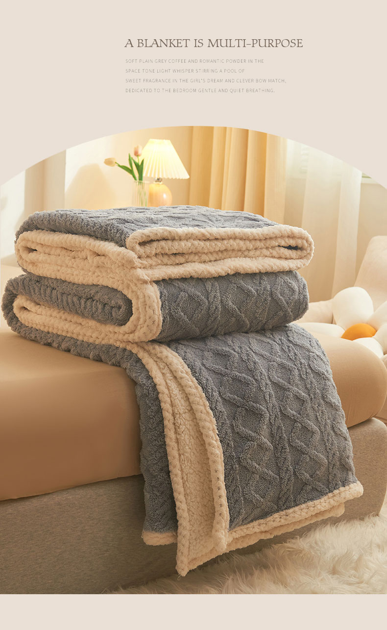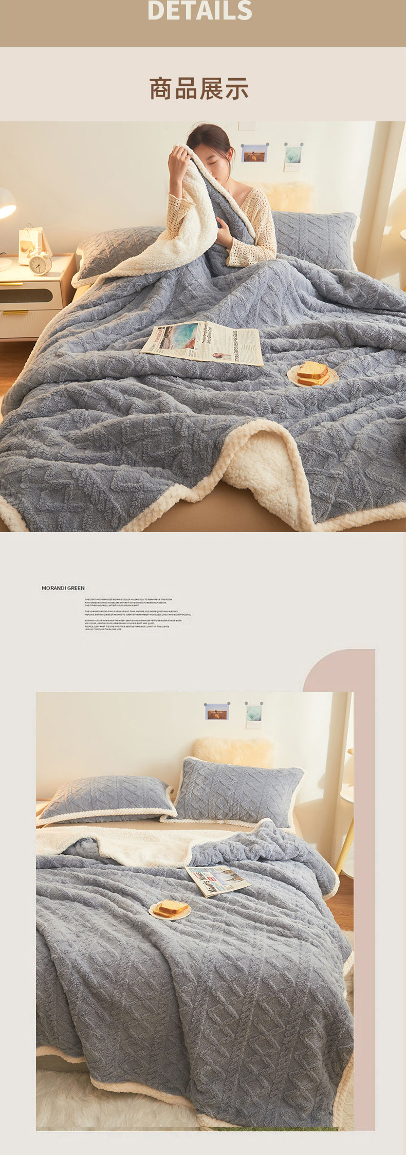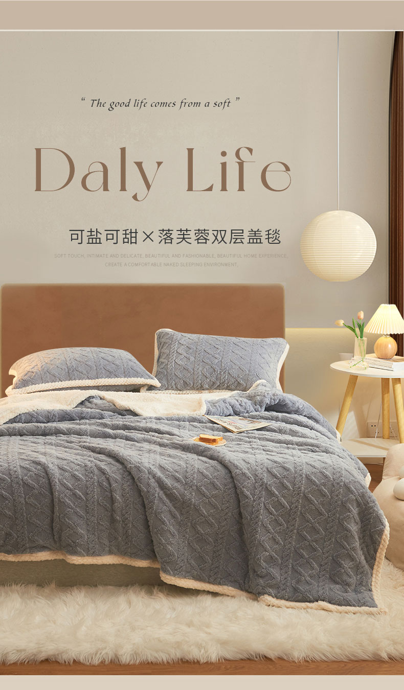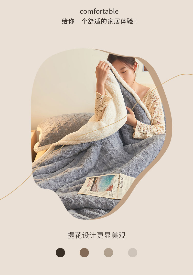 好梦缘 2023新款柔软塔芙绒提花毛毯 戴青灰