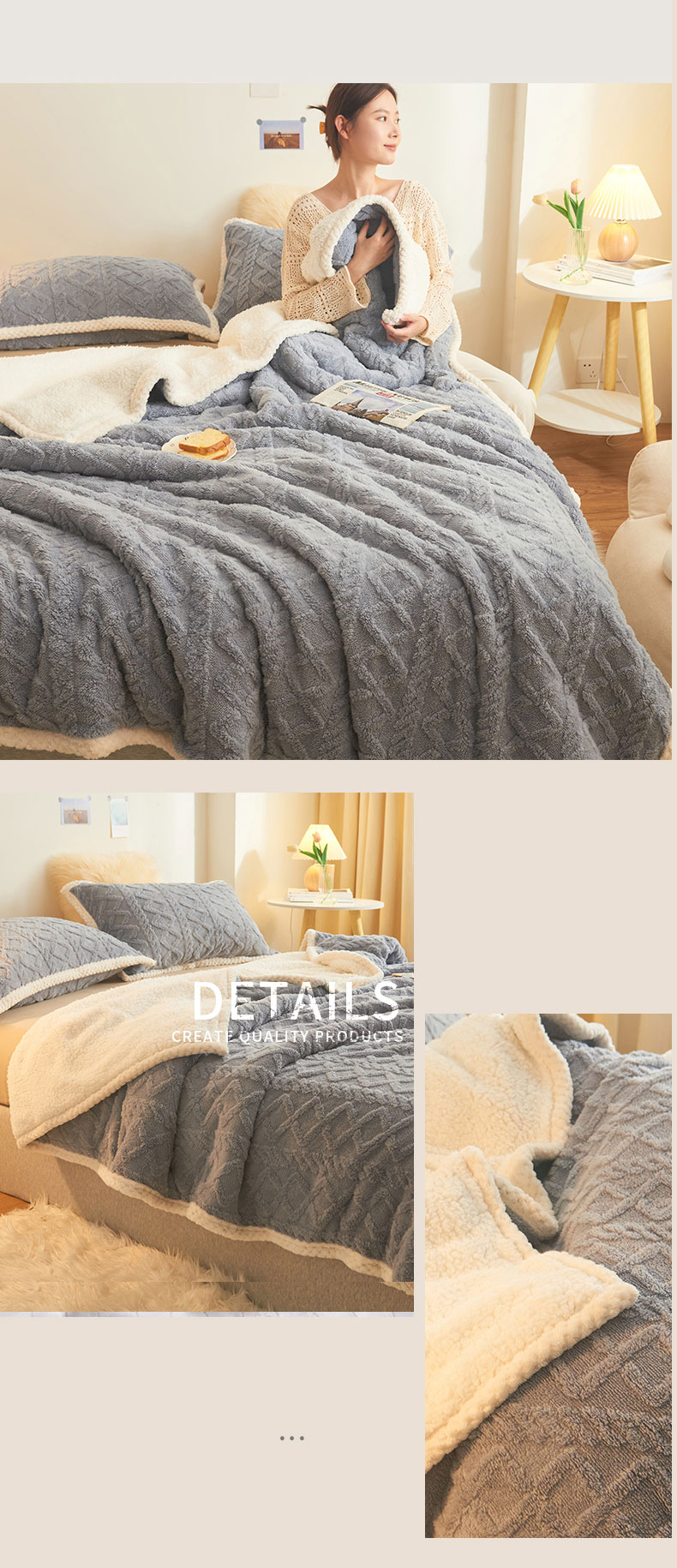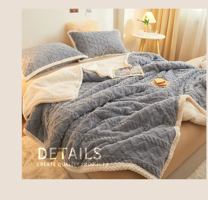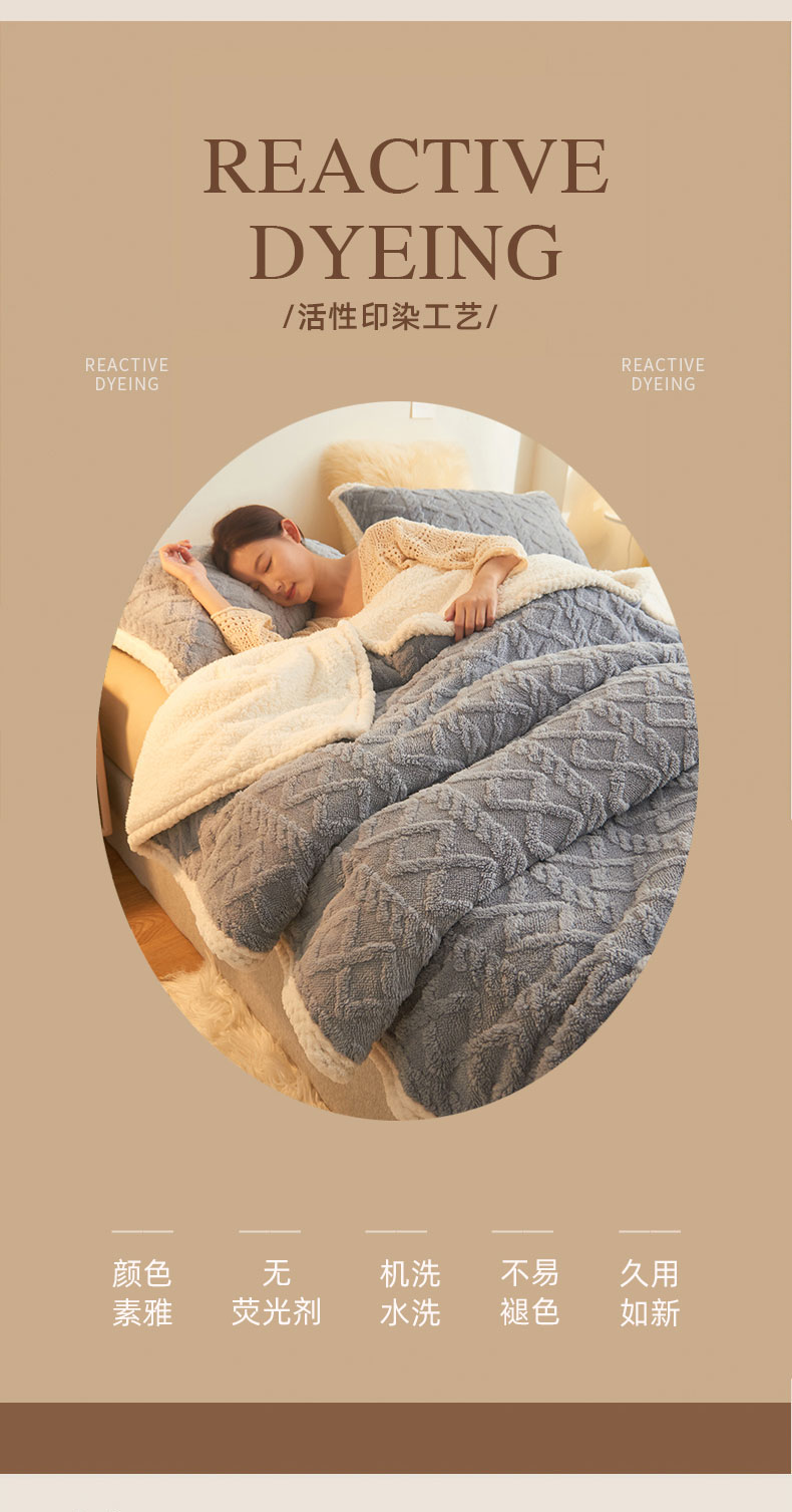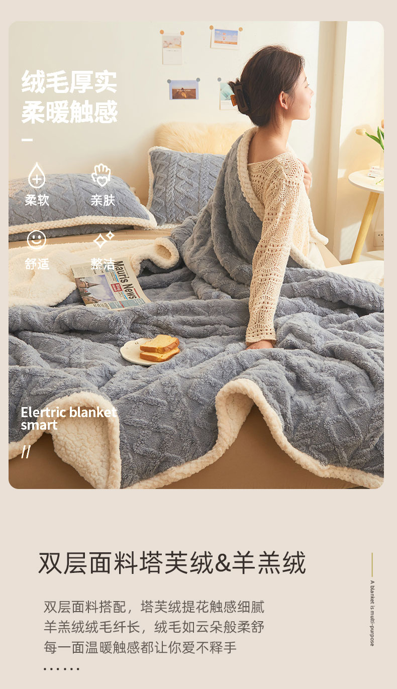 好梦缘 2023新款柔软塔芙绒提花毛毯 戴青灰
