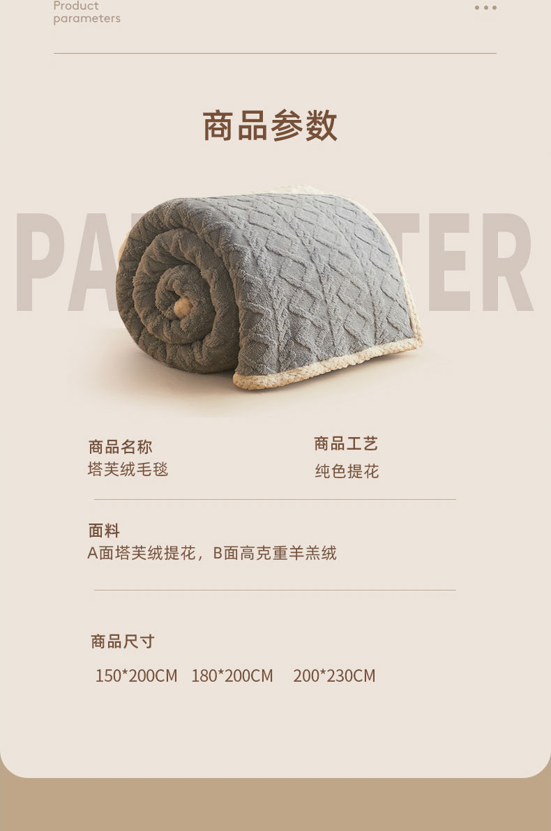 商品名称:好梦缘 2023新款柔软塔芙绒提花毛毯 戴青灰