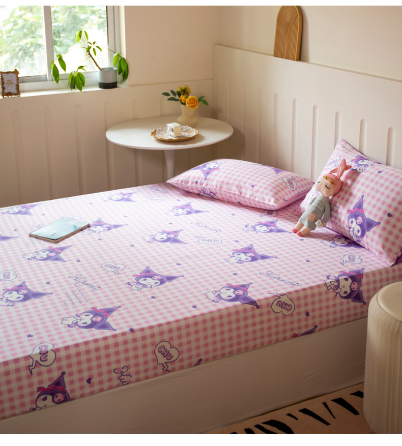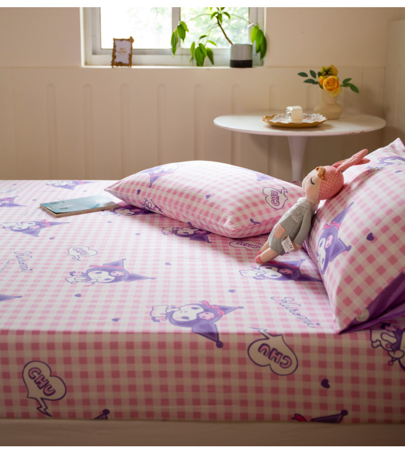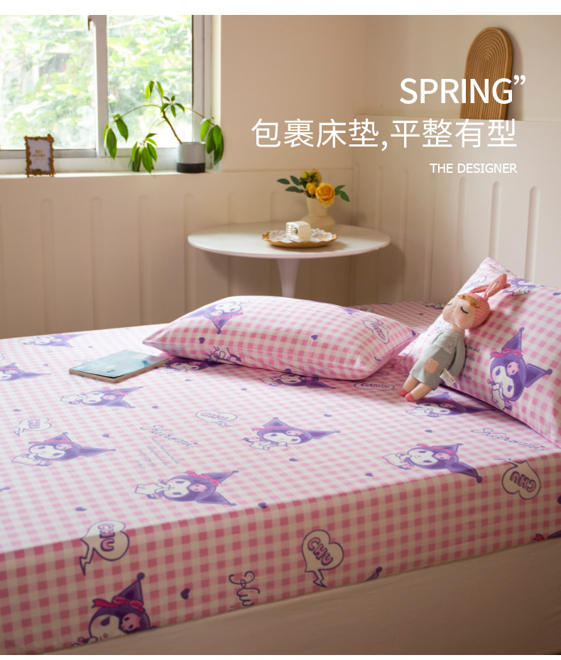 博雅 2023新款全棉卡通印花床笠 紫格库洛米
