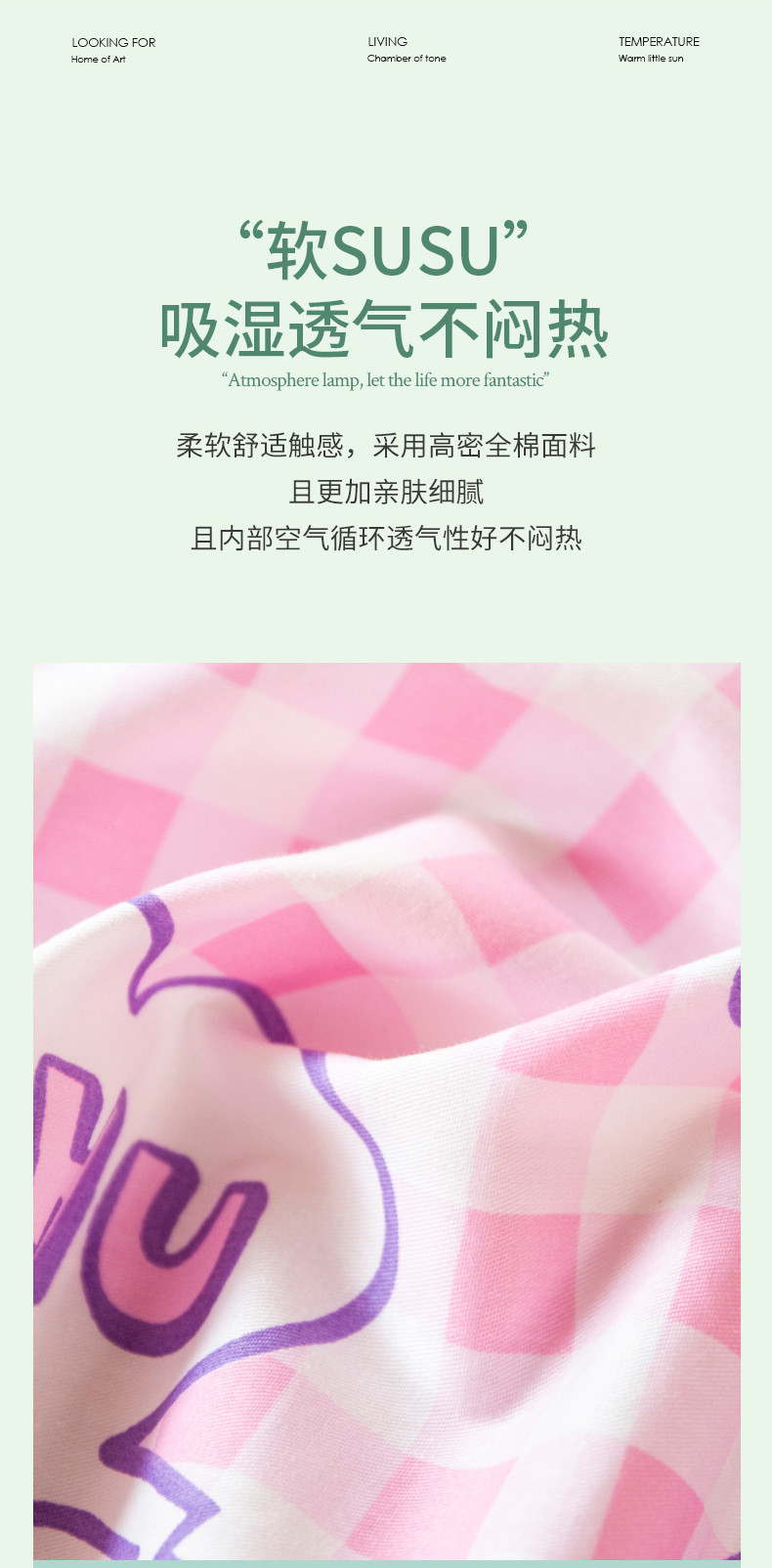 • 91家纺网 家纺一手货源 找家纺 博雅 2023新款全棉卡通印花床笠 紫格库洛米