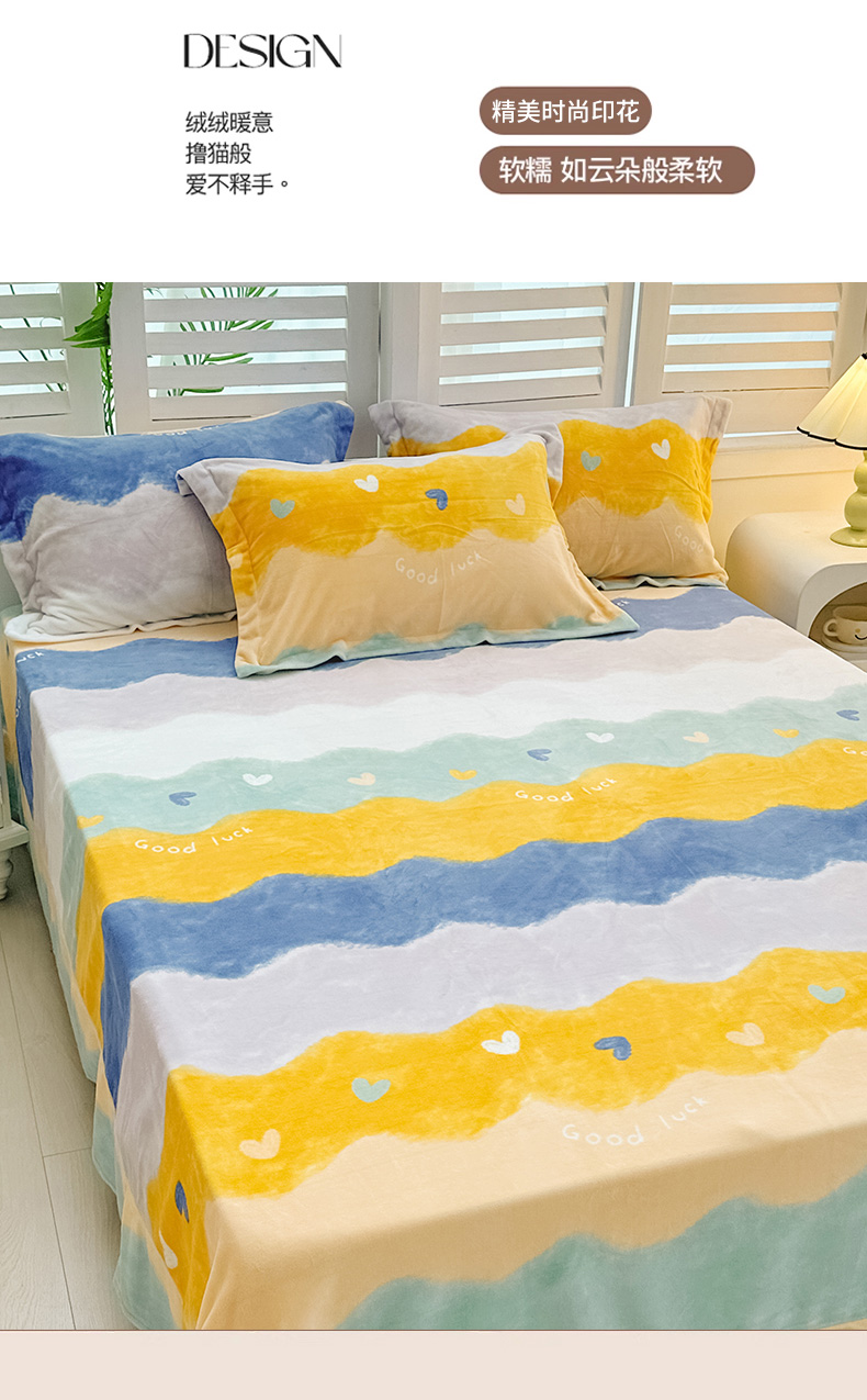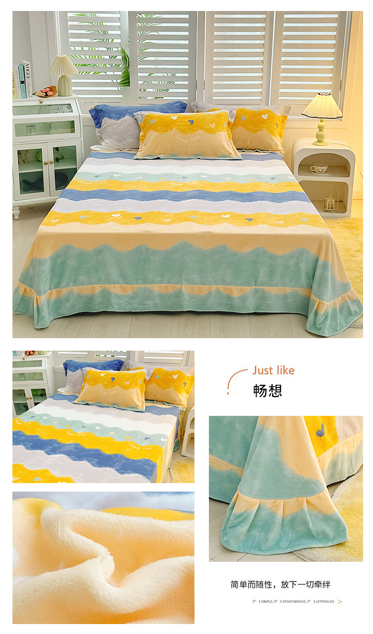 商品名称:新款230克印花牛奶绒床单定制定做尺寸 畅想