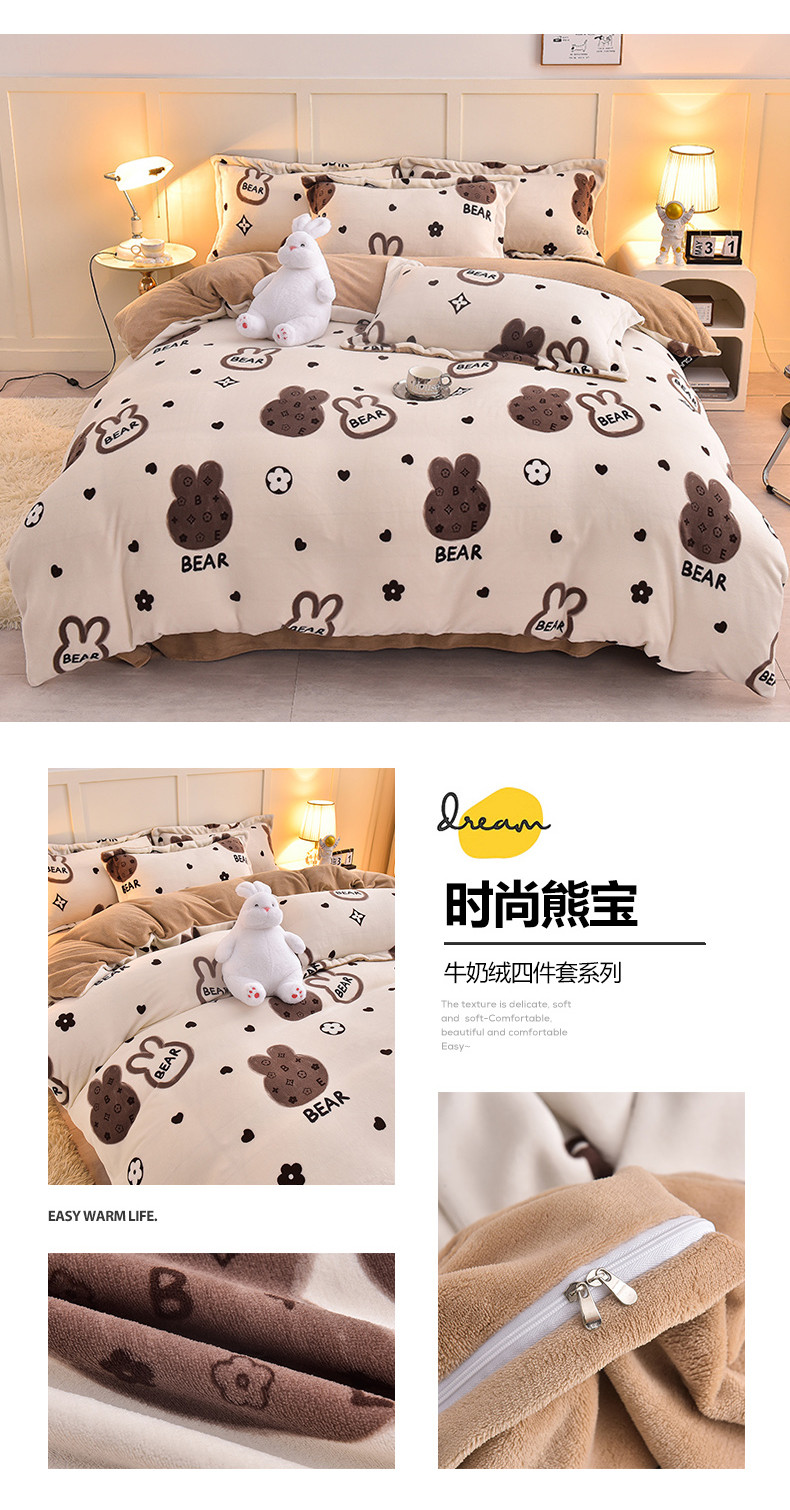 (总)简一 2025新款小清新牛奶绒印花四件套-卡通系列,梦想起航,心想事成,熊猫乐园-绿,马卡米奇,唐老鸭,兔伴心河,叶畔兔语,波点狗狗-兰,格子美拉兔,腊肠狗联盟,萝莉猫咪,萌宠乐园,派对乐园