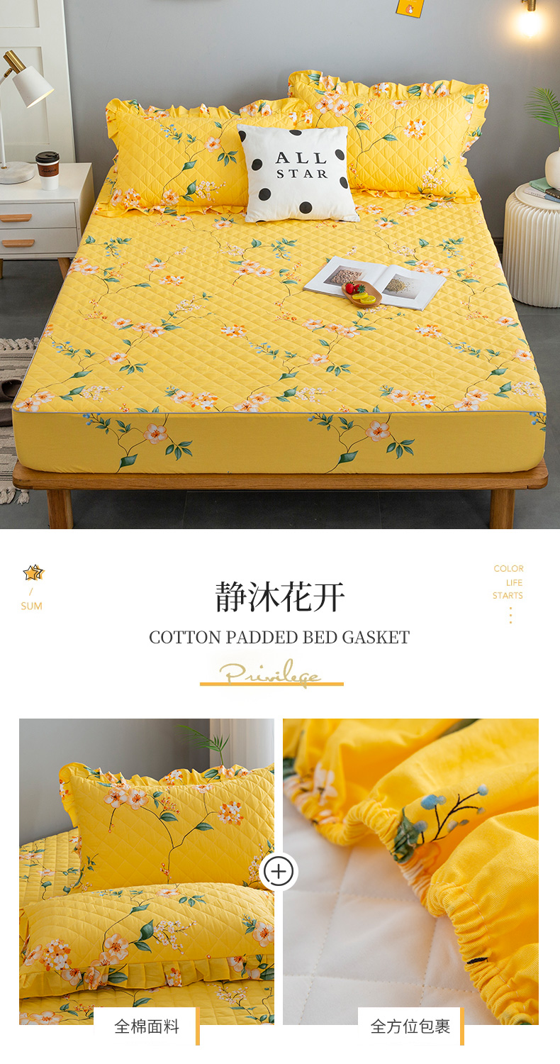 情煊 2023新款全棉夹棉纯色印花床笠款(可定制尺寸) 静沐花开