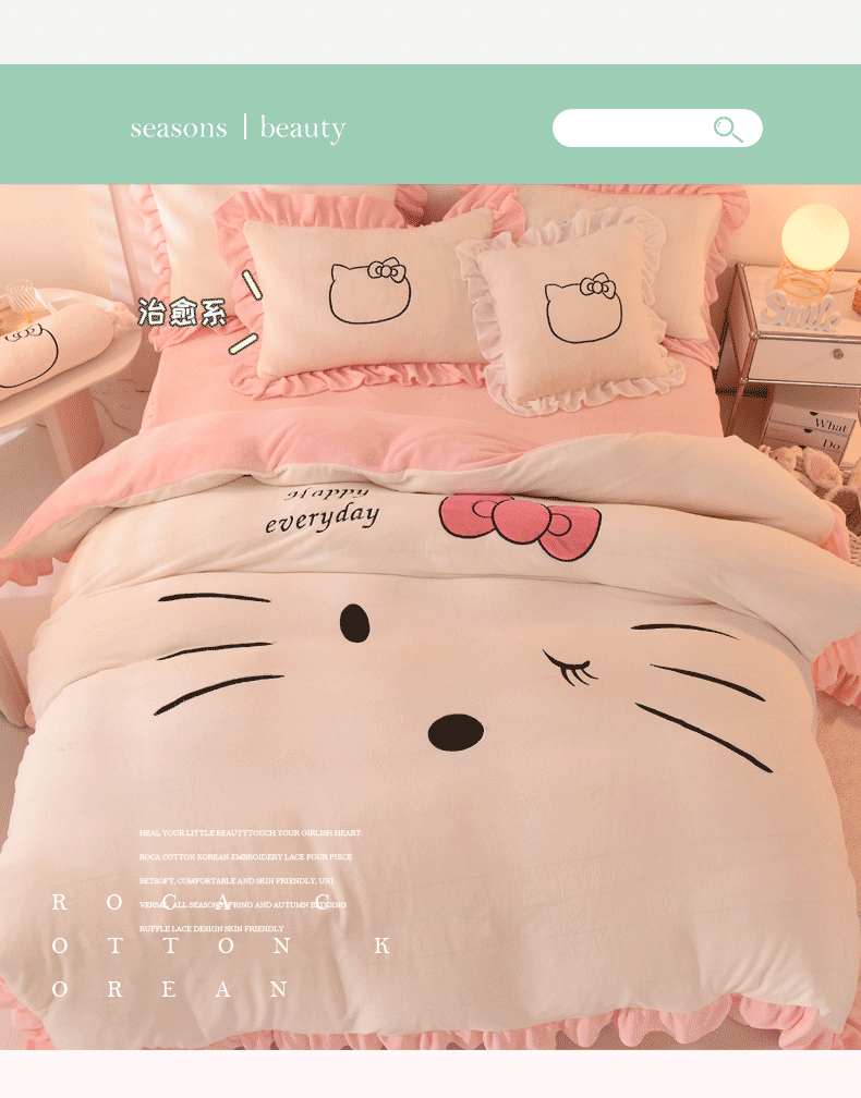 当前位置: 91家纺网 > 商品网购 > 床品套件 > 四件套 > 牛奶绒四件套 > 丝印良品 2024新款高端牛奶绒卡通刺绣牛奶绒四件套 美美猫-芝士粉