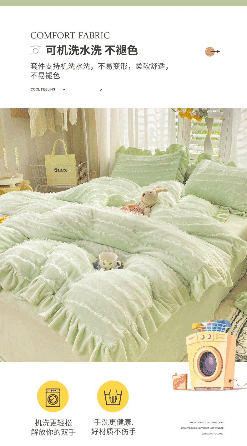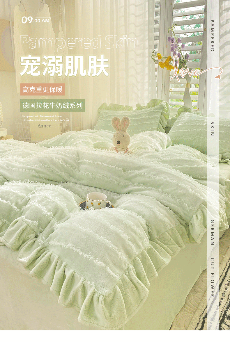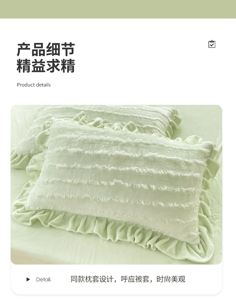 商品名称:欧冠 2023新款高端牛奶绒提花四件套 抹茶绿