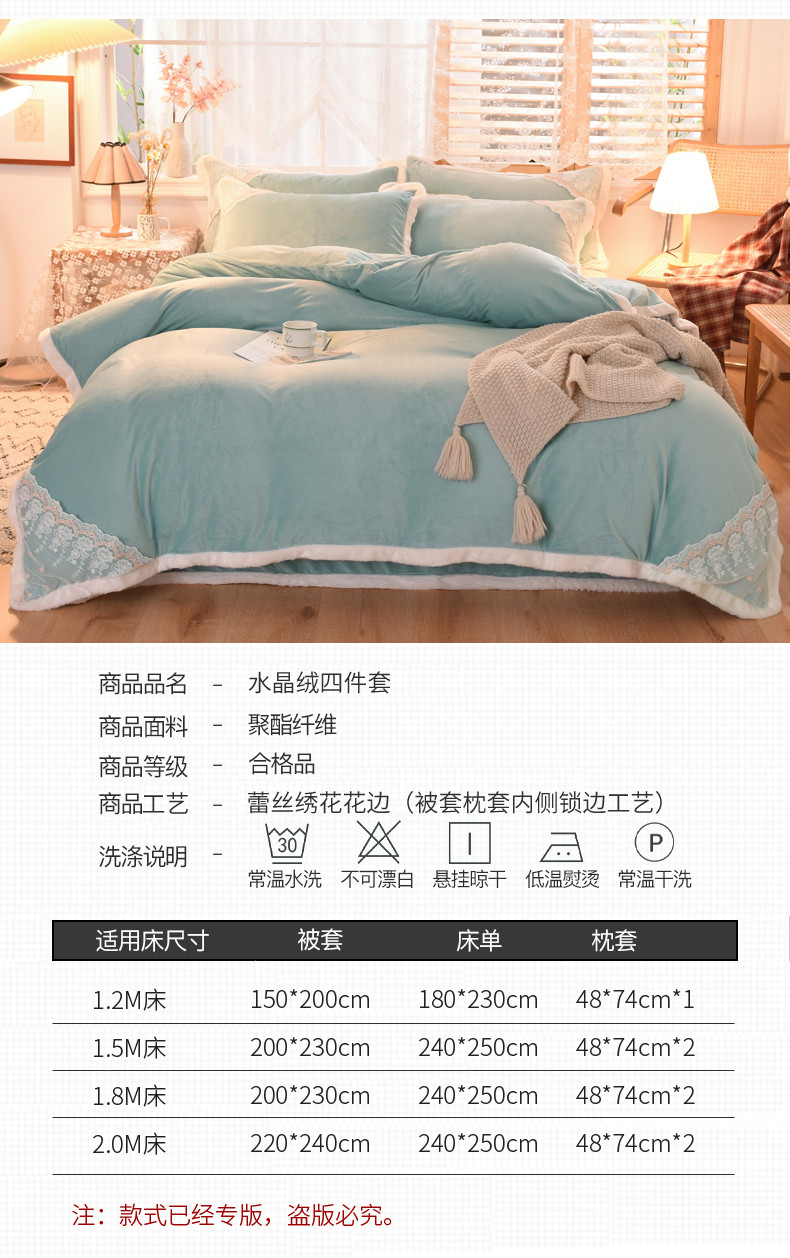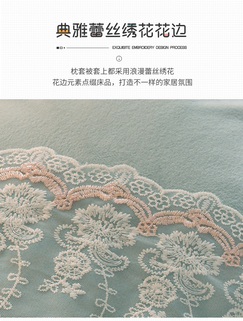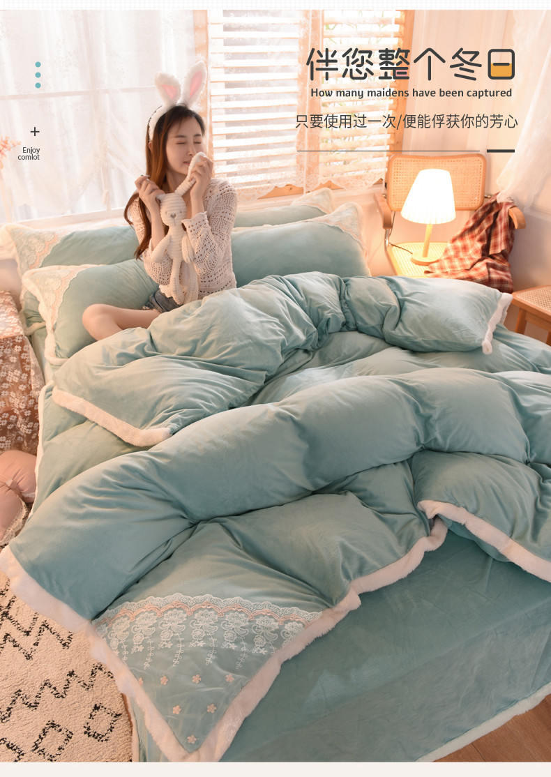 商品名称:丝印良品 2023新款韩版公主牛奶绒四件套 幕蓝