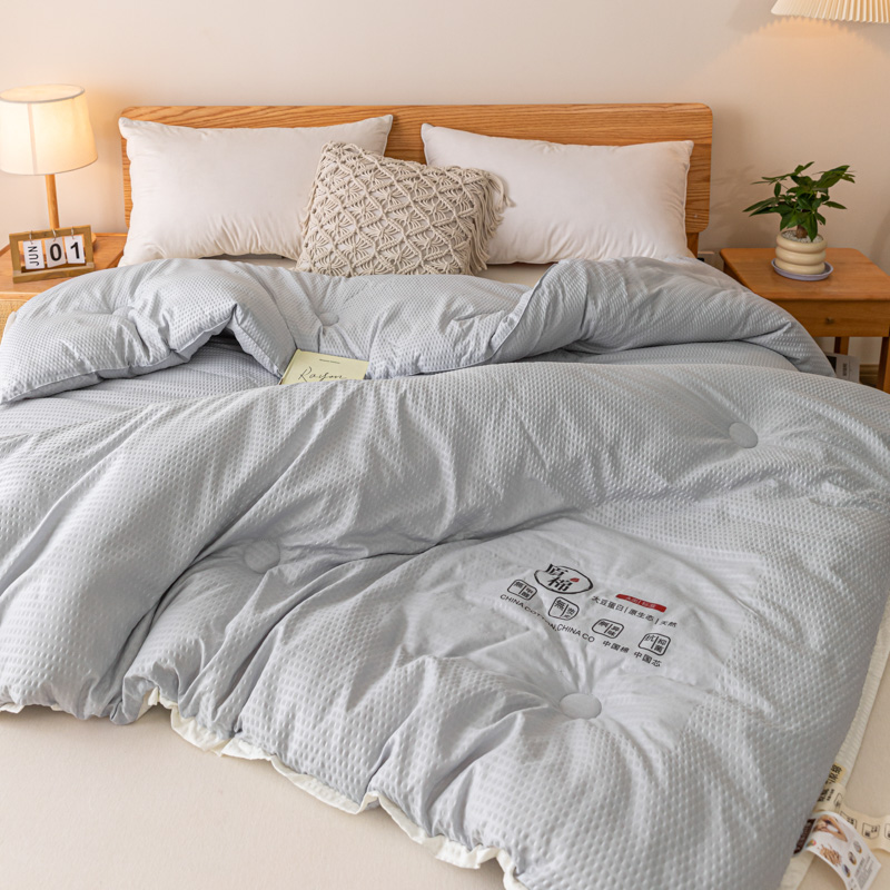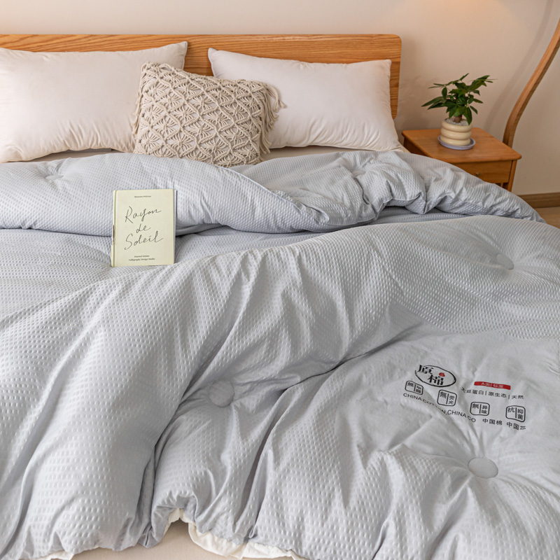 亚龙工厂店 泡泡纱豆豆被 灰色