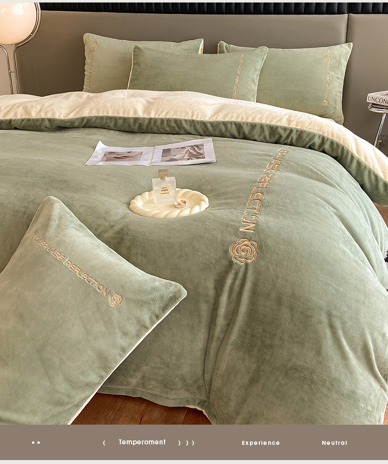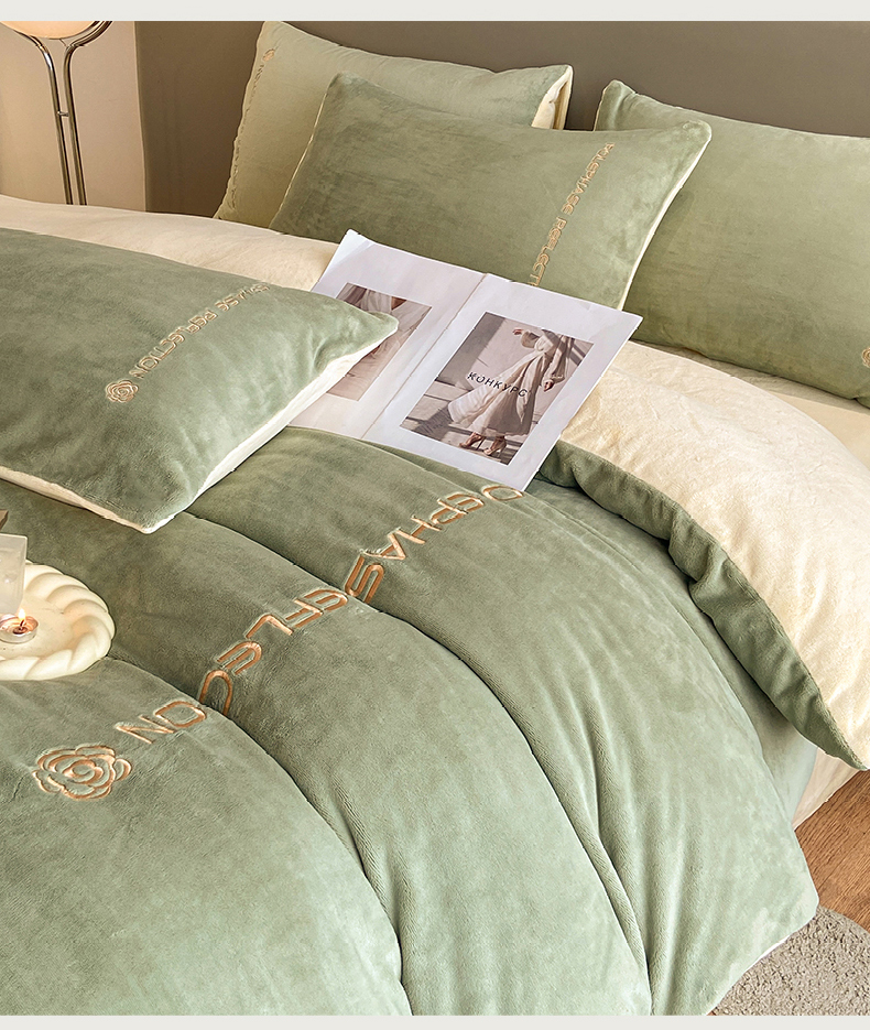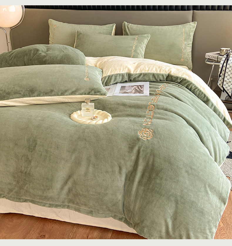 澳梵 2023新款轻奢风牛奶绒刺绣四件套 浅豆绿