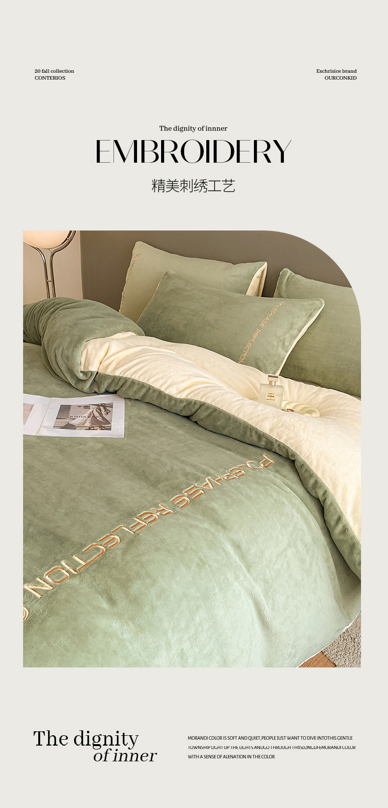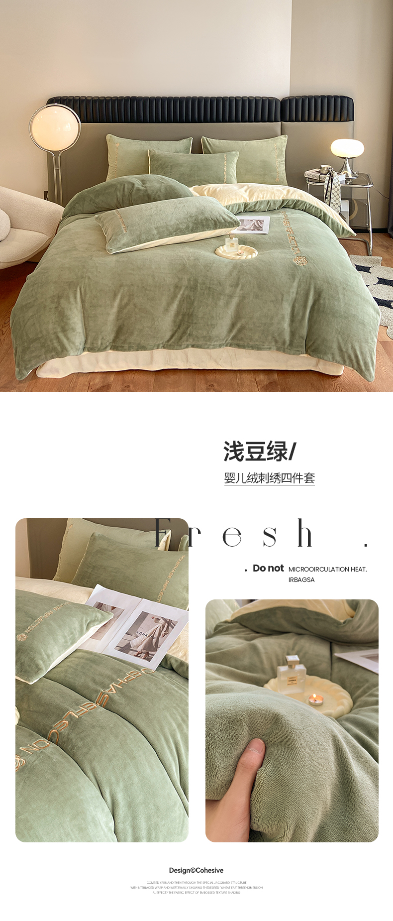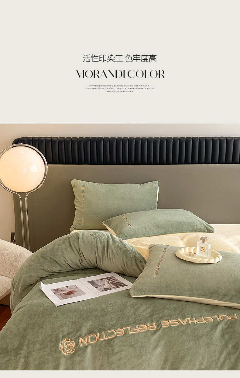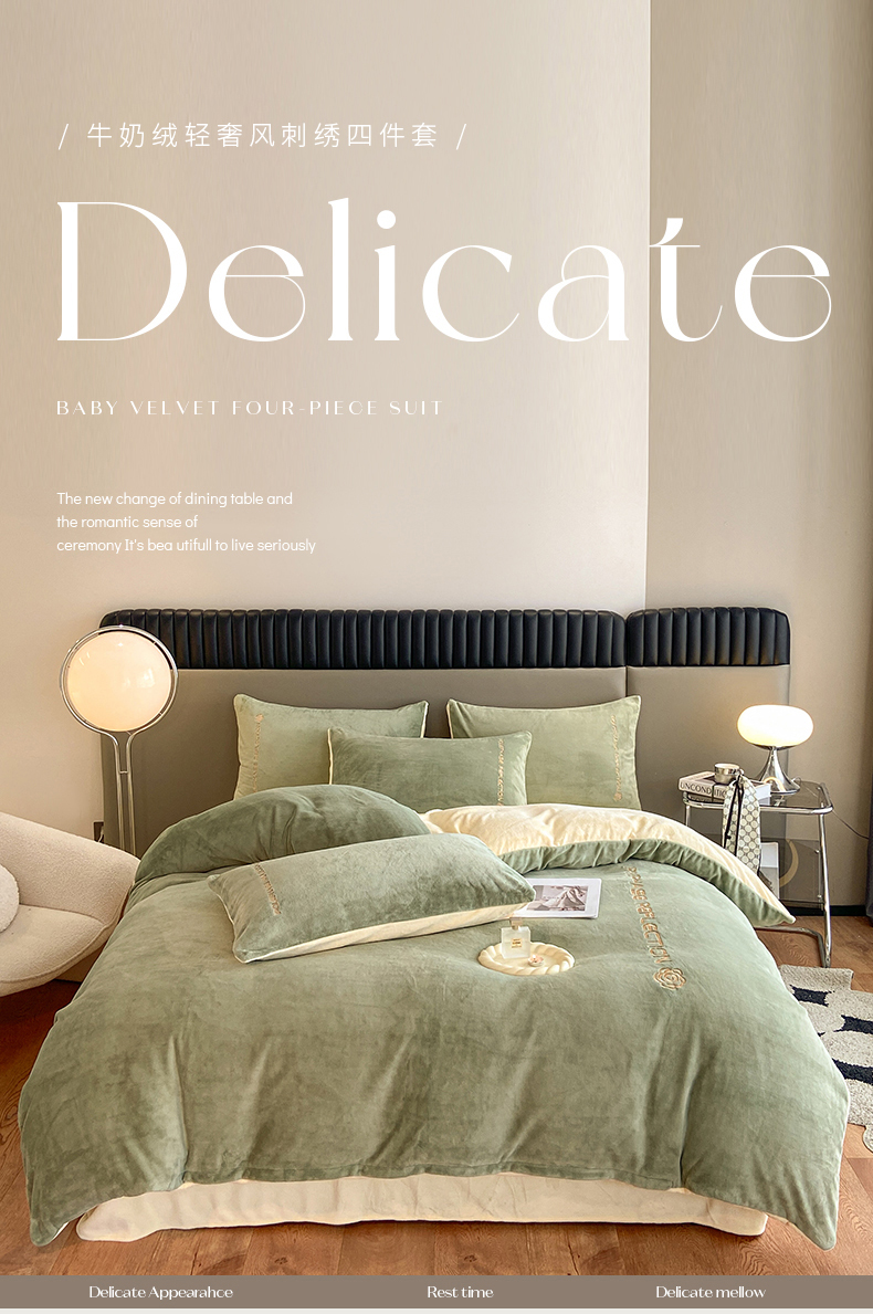 商品名称:澳梵 2023新款轻奢风牛奶绒刺绣四件套 浅豆绿