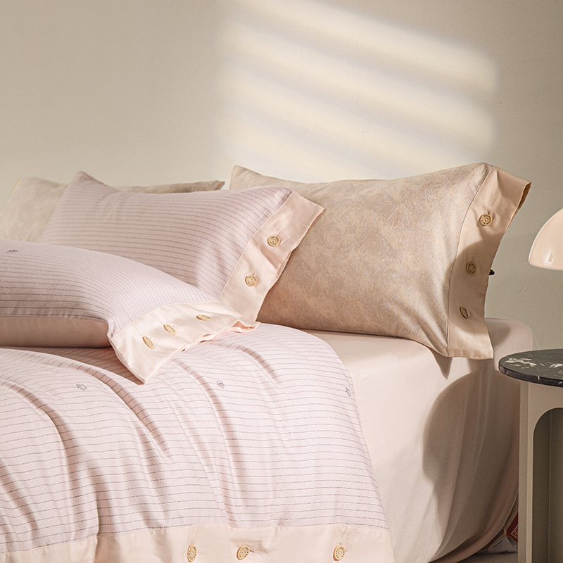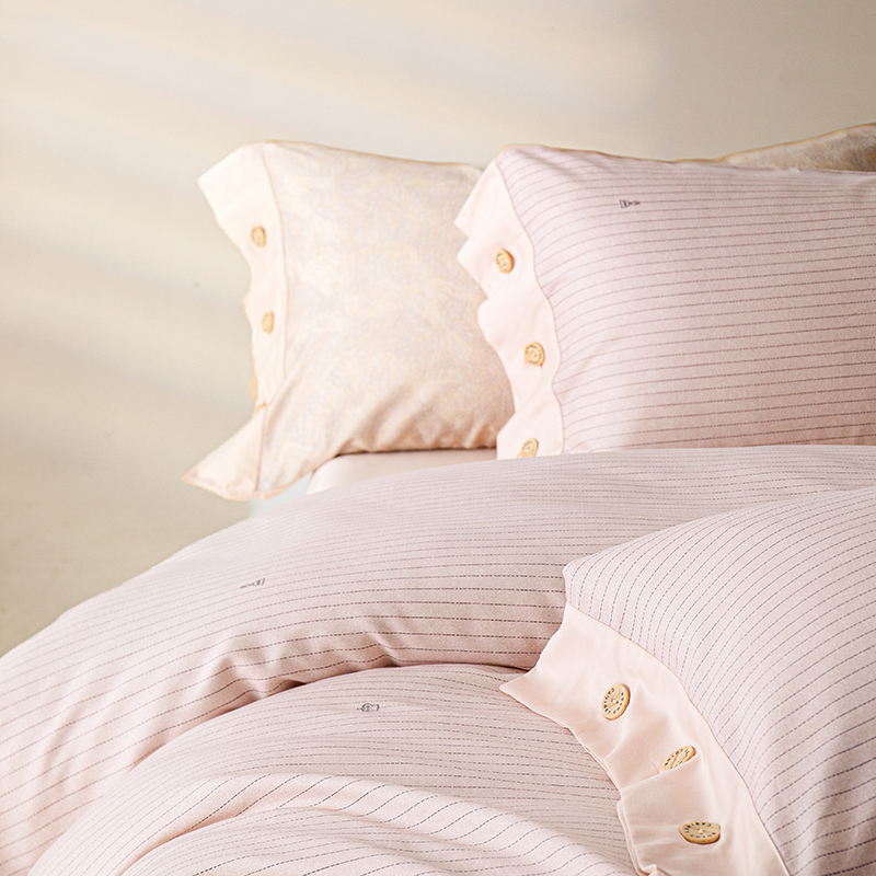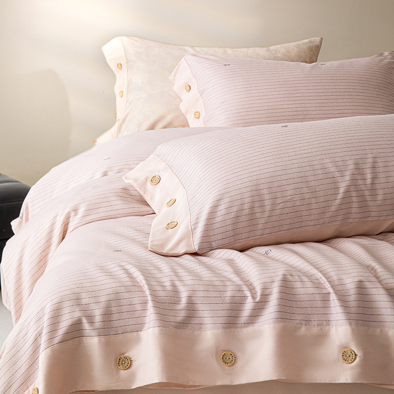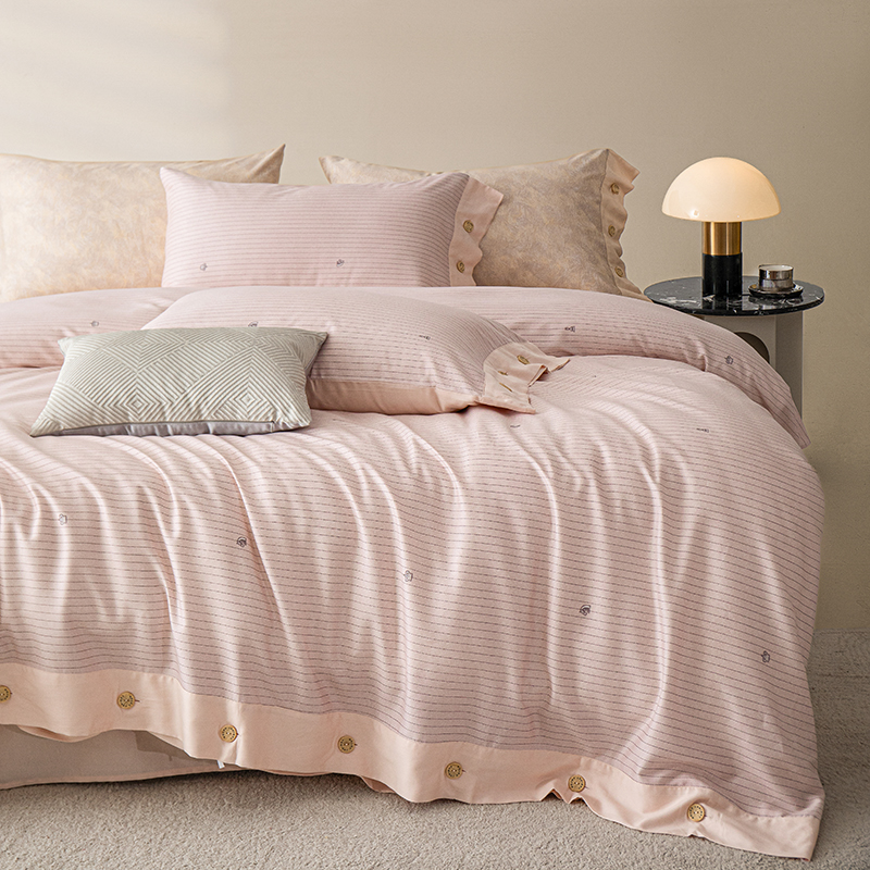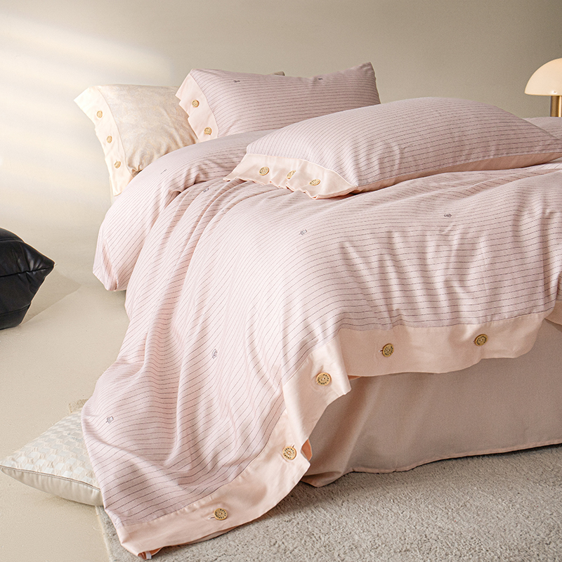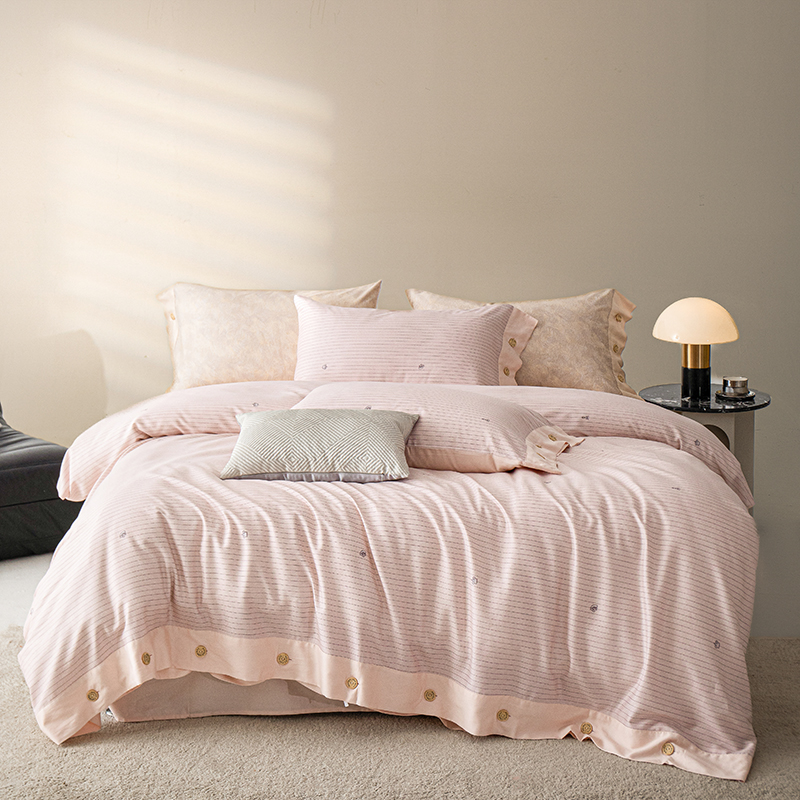 栩裕纺织 2023新款磨毛艾阳绒纽扣款四件套 粉玉色