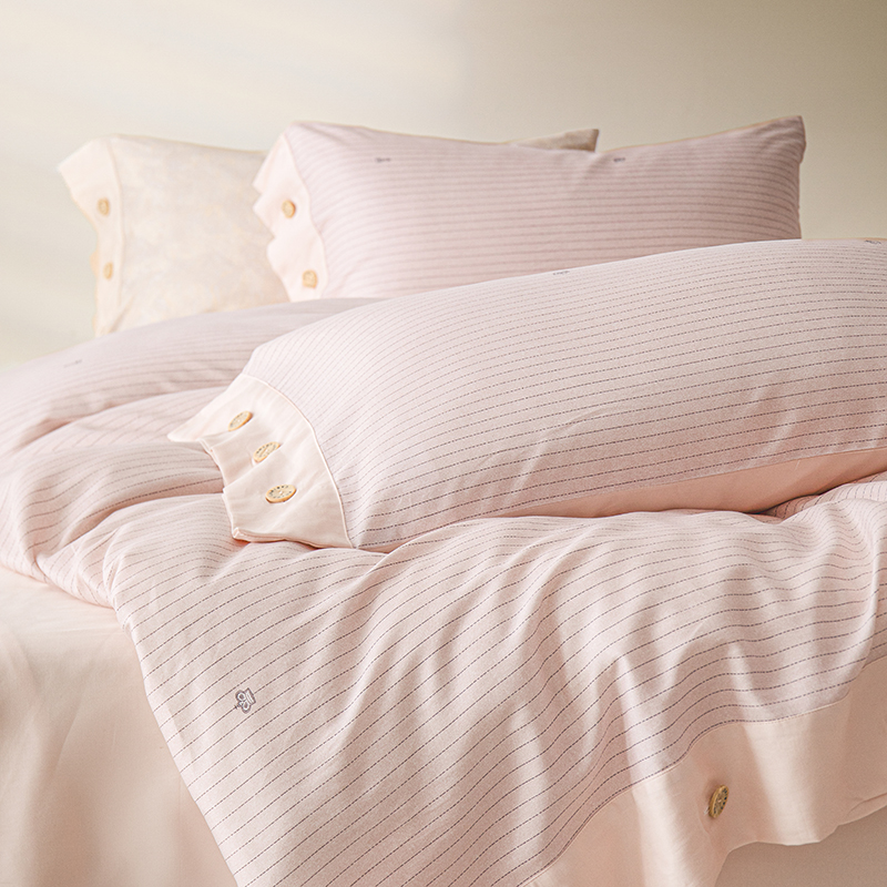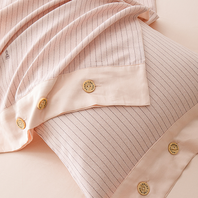 商品名称:栩裕纺织 2023新款磨毛艾阳绒纽扣款四件套 粉玉色