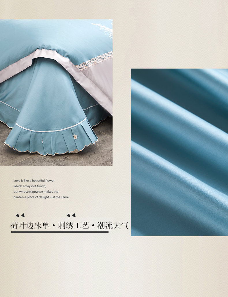 商品名称:诗黛尔长绒棉刺绣四件套-流光溢彩 流光溢彩 水沐蓝
