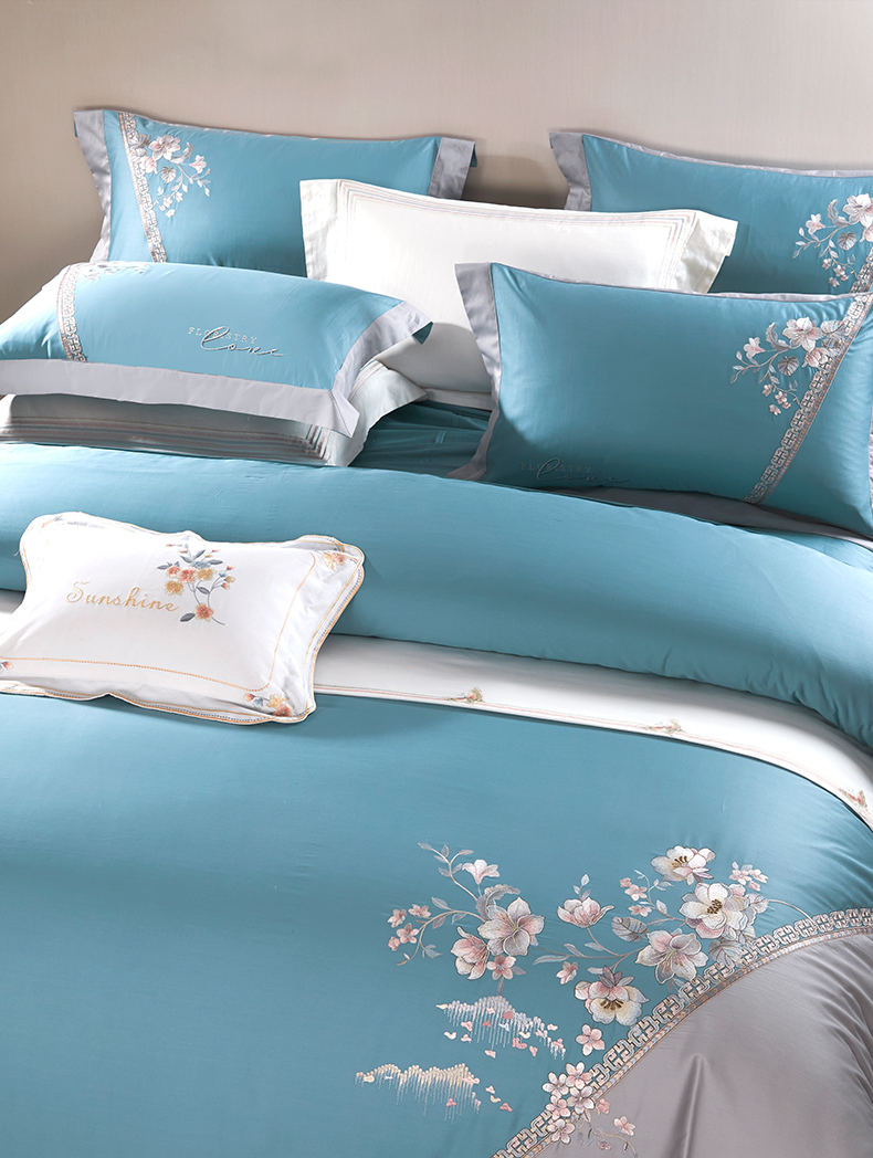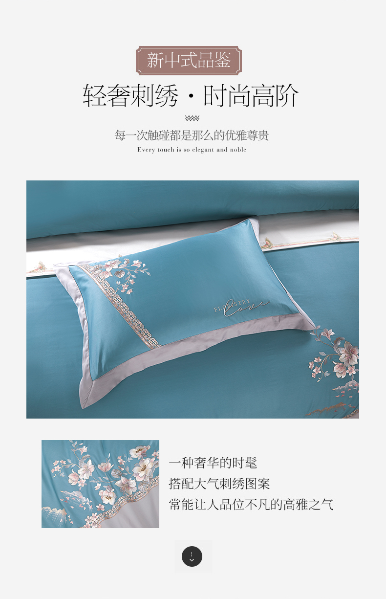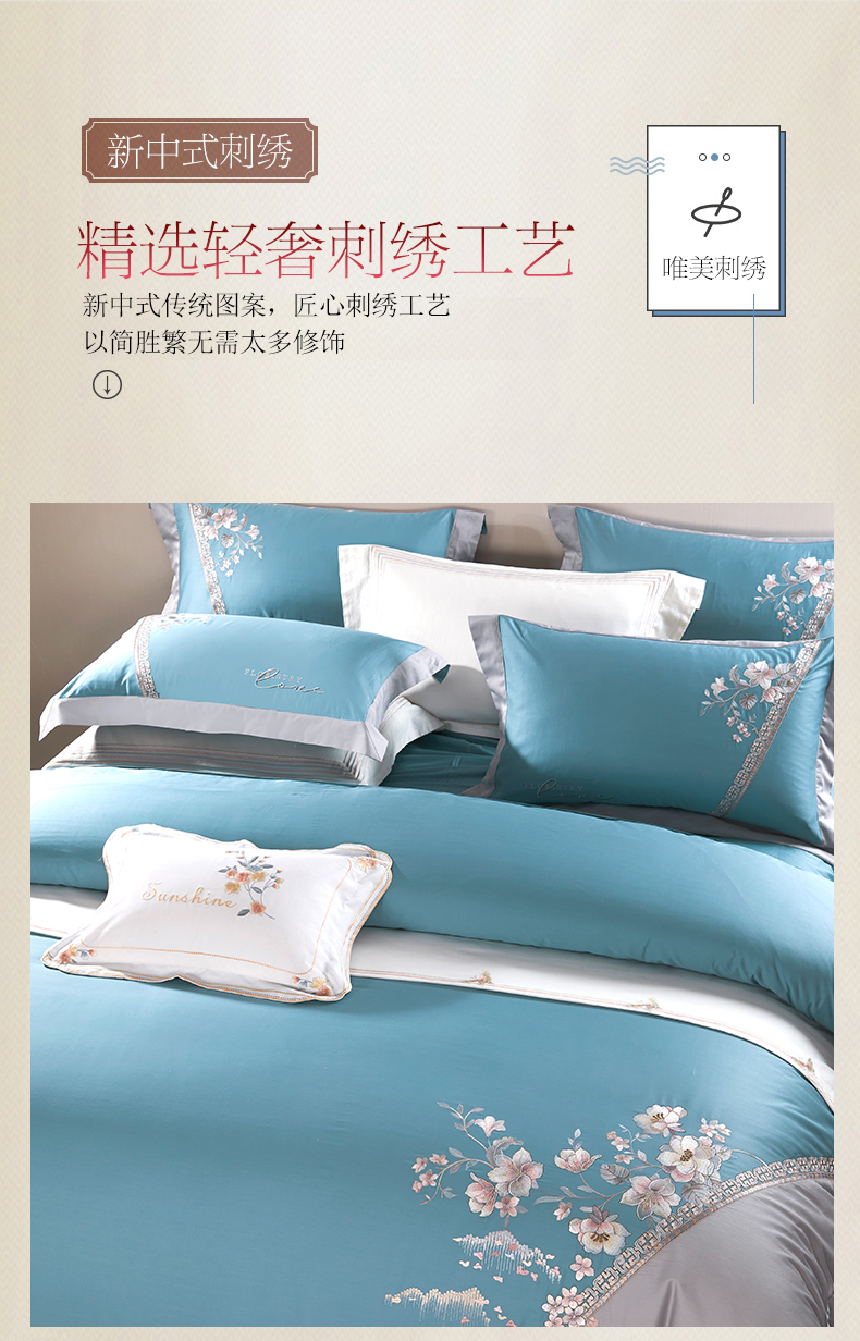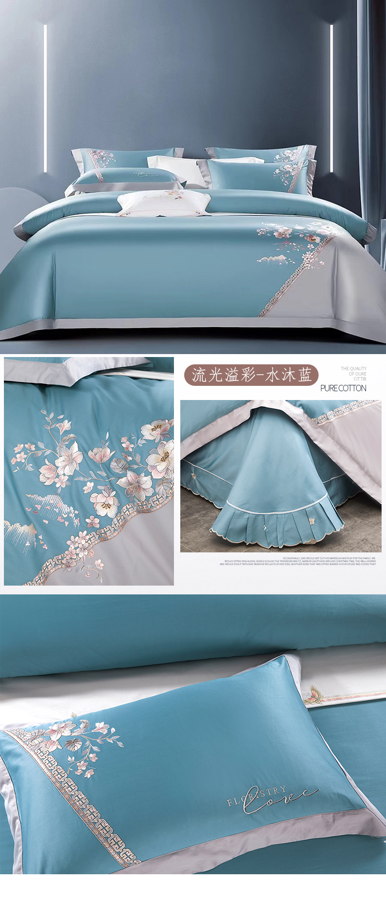 诗黛尔长绒棉刺绣四件套-流光溢彩 流光溢彩 水沐蓝