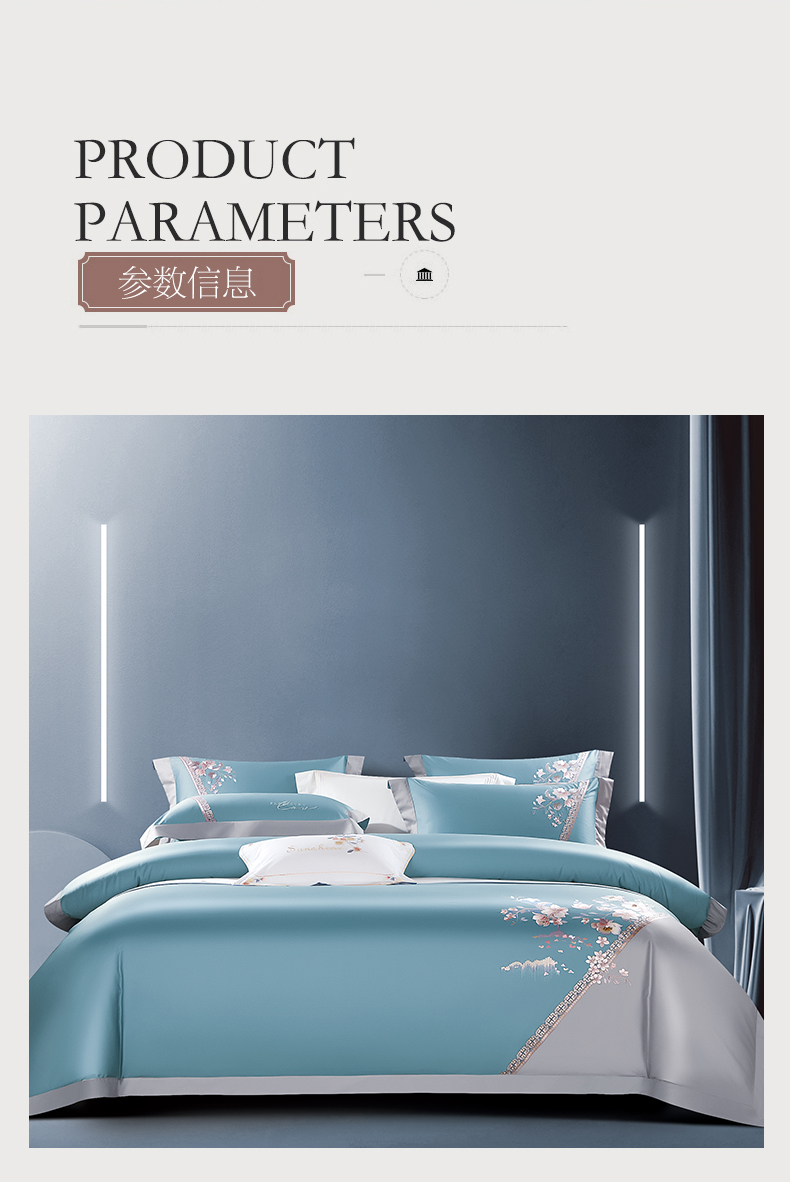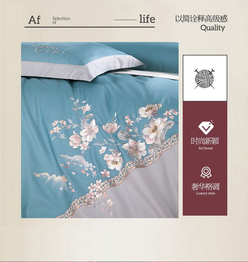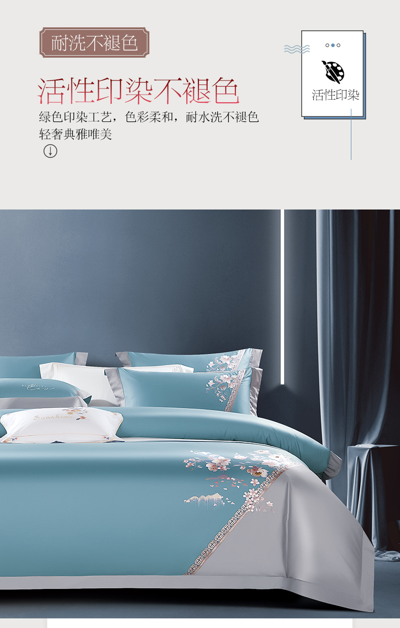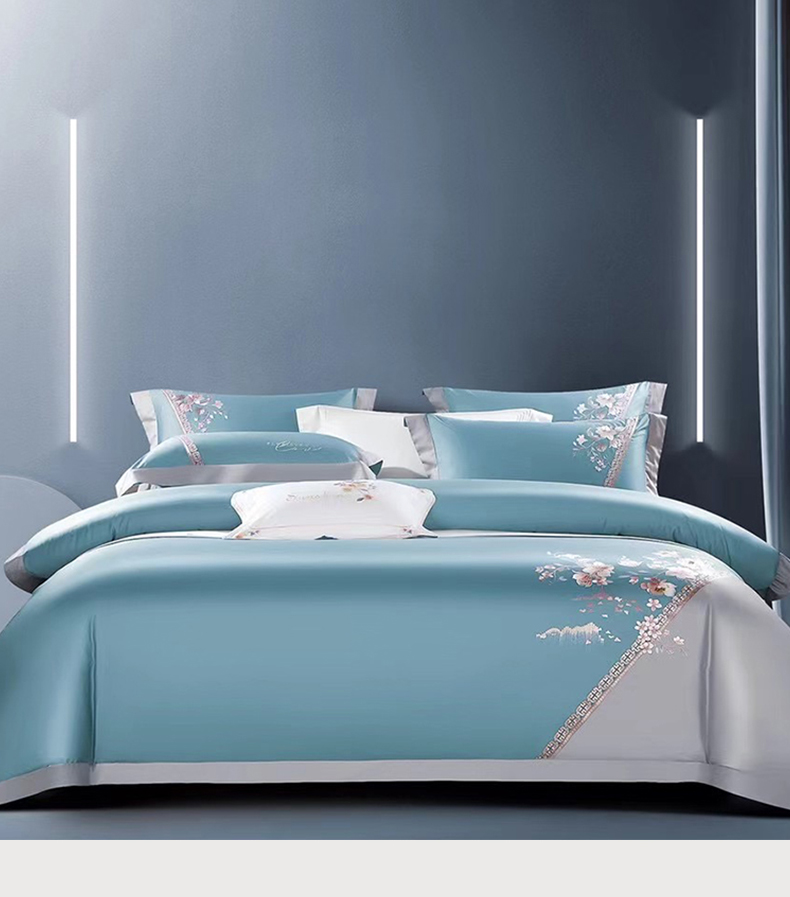 诗黛尔长绒棉刺绣四件套-流光溢彩 流光溢彩 水沐蓝