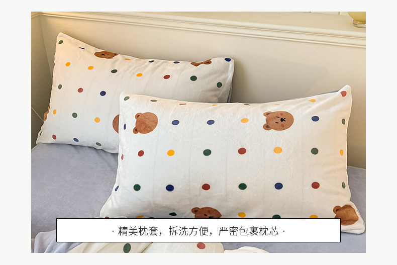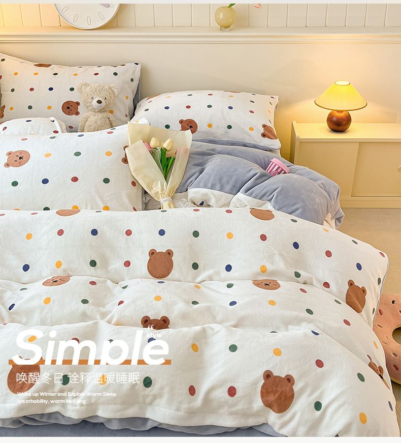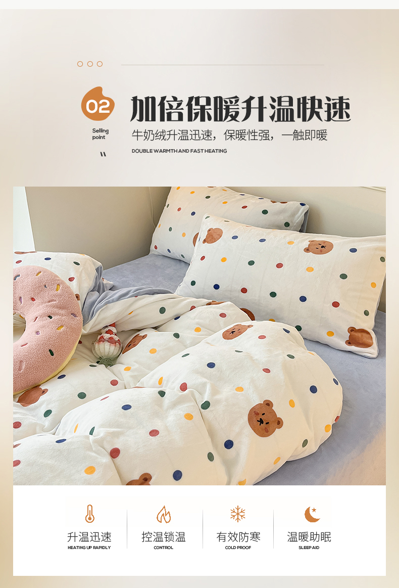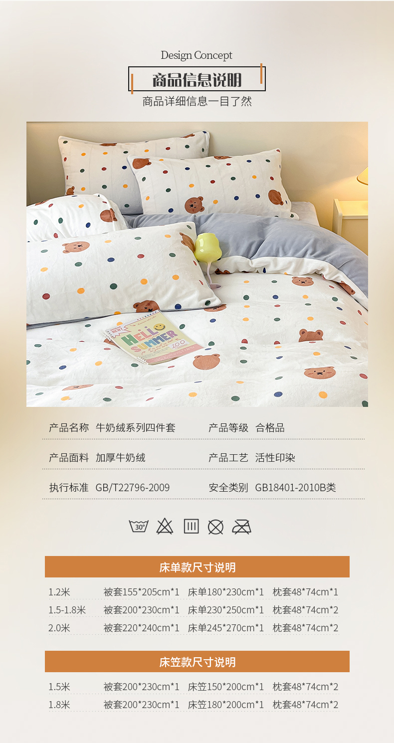 商品名称:桃子家居 2023新款ins韩系简约卡通奶油小清新加厚牛奶绒系列四件套 绒-点点熊
