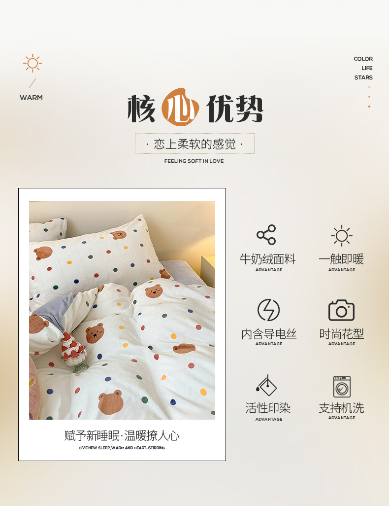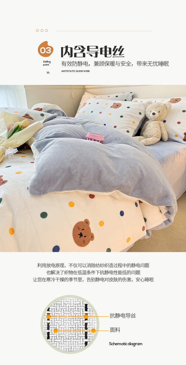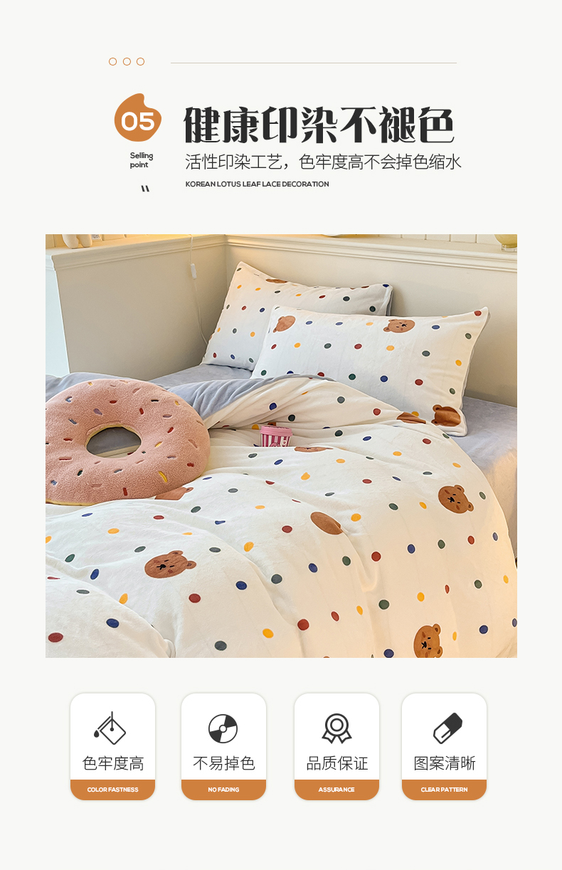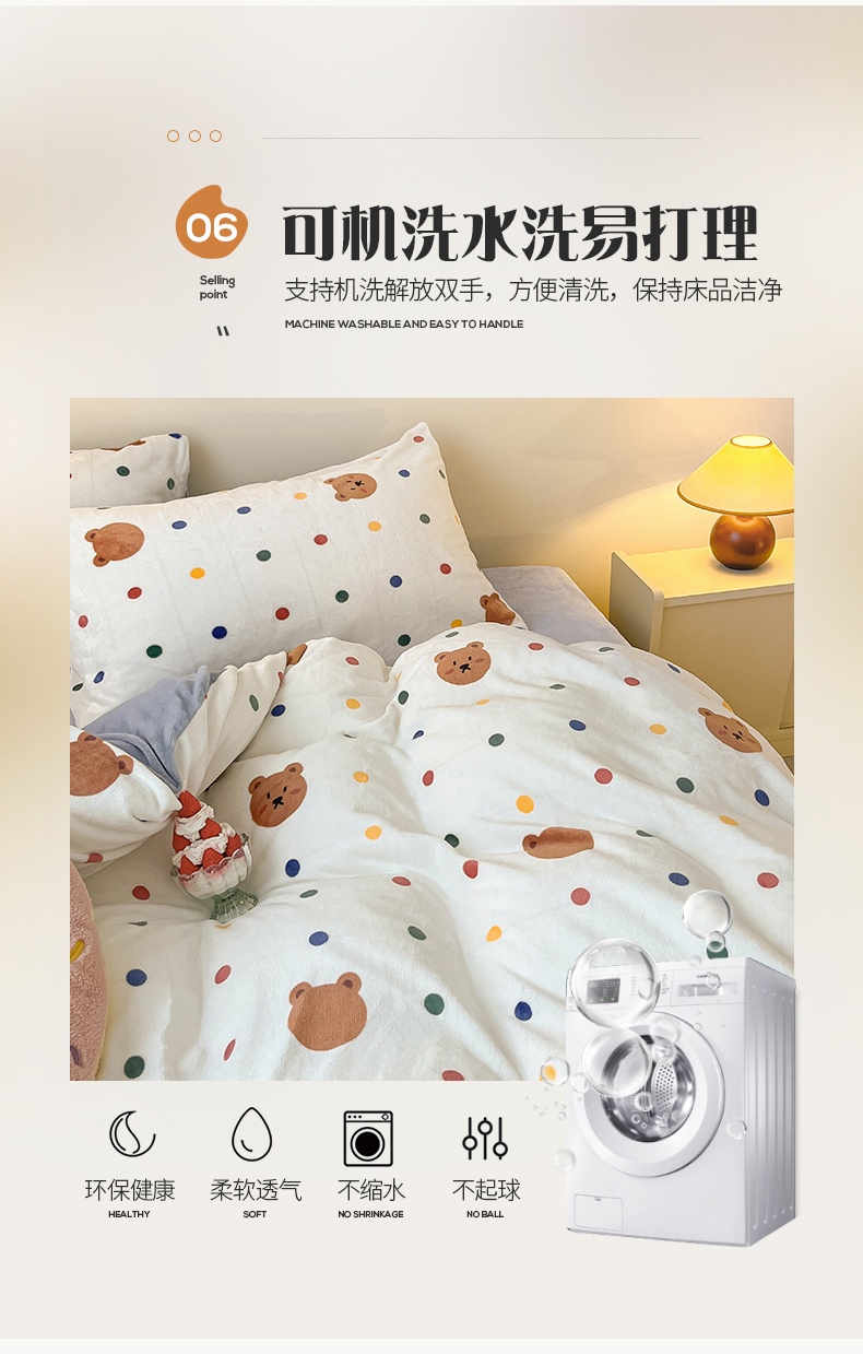 商品名称:桃子家居 2023新款ins韩系简约卡通奶油小清新加厚牛奶绒系列四件套 绒-点点熊