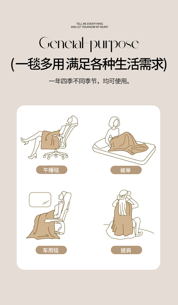 (总)金来家纺2024菠萝格包边多功能盖毯,湖兰,军绿,卡其,雾紫,浅灰,豆沙