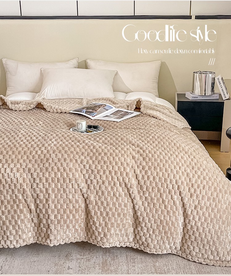 金来家纺 2024新款大泡泡牛奶绒毛毯多功能盖毯 泡泡绒-卡其,泡泡绒-卡其