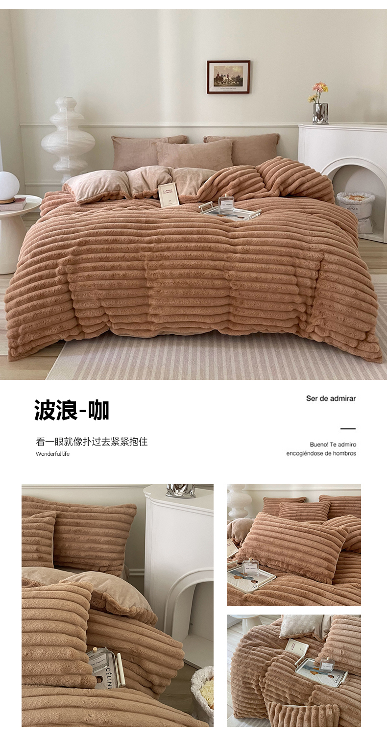 商品名称:喜梦缘 2025新款A类兔毛绒四件套 波浪-咖