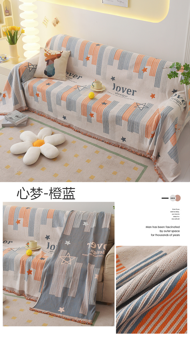 当前位置: 91家纺网 > 商品网购 > 居家布艺 > 坐垫/椅垫/沙发垫 > 沙发垫 > 启博家纺 2023新款抖 音爆款高克重雪尼尔沙发巾 心梦-橙蓝