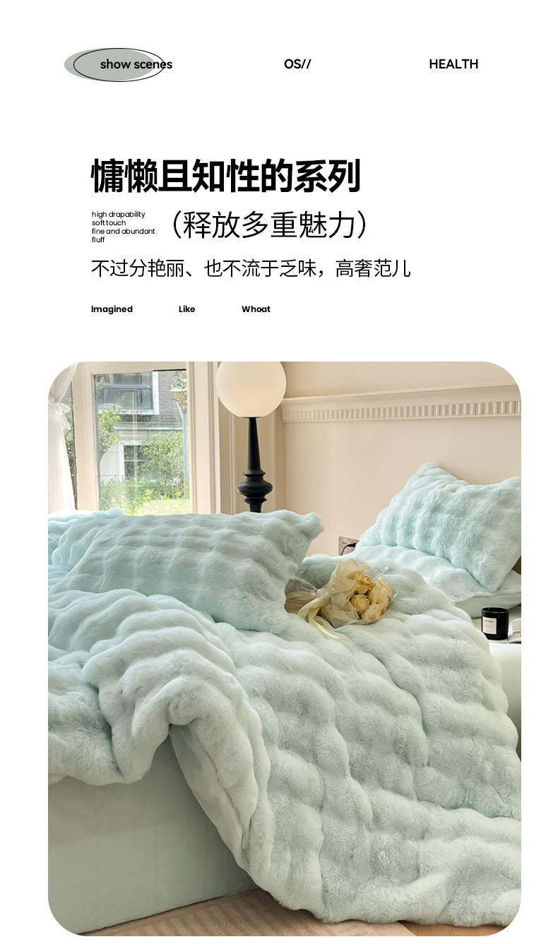 当前位置: 91家纺网 > 商品网购 > 床品套件 > 四件套 > 兔毛绒四件套 > 慕尚 2025新款480g加厚兔毛绒兔兔绒四件套 薇妮蔚蓝