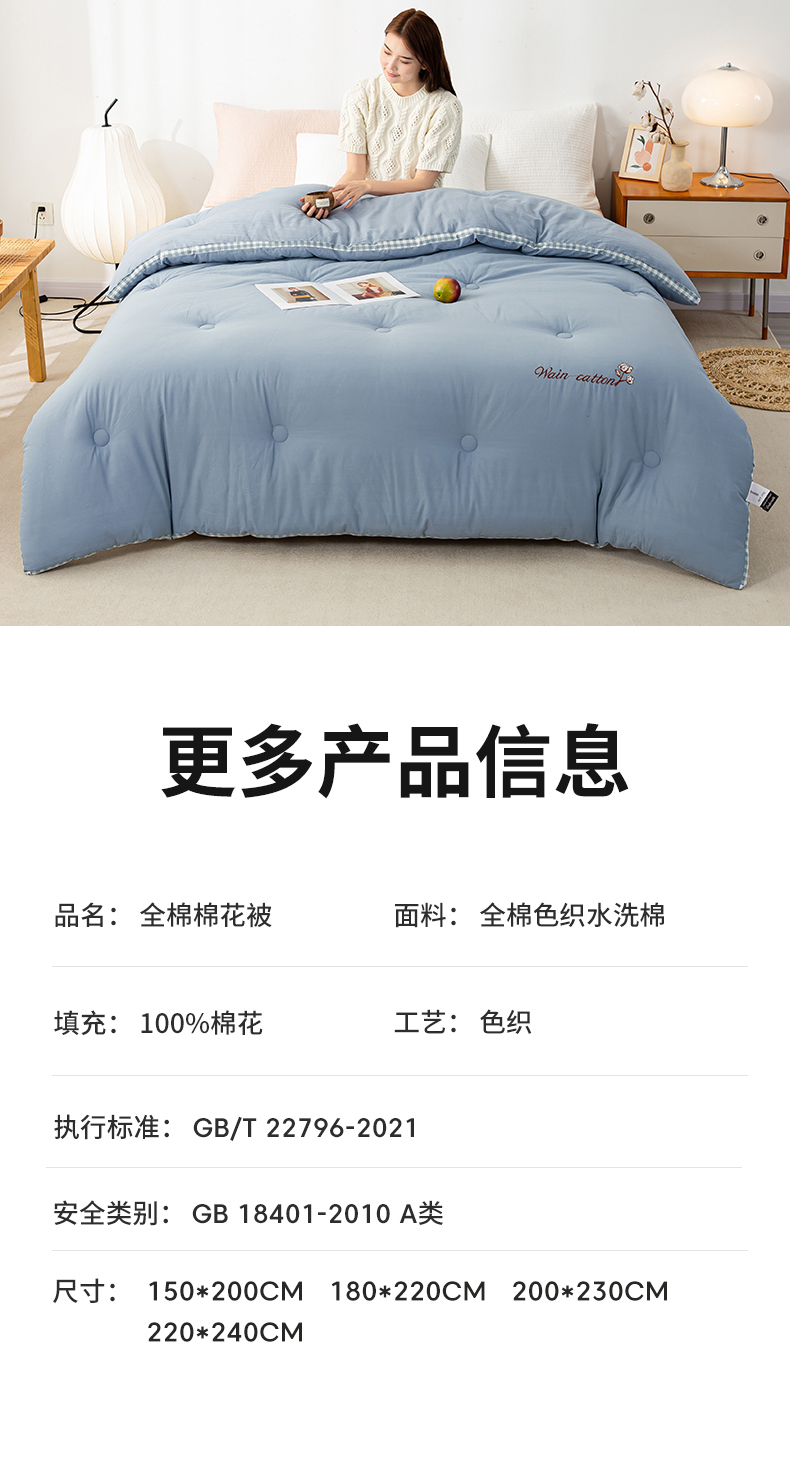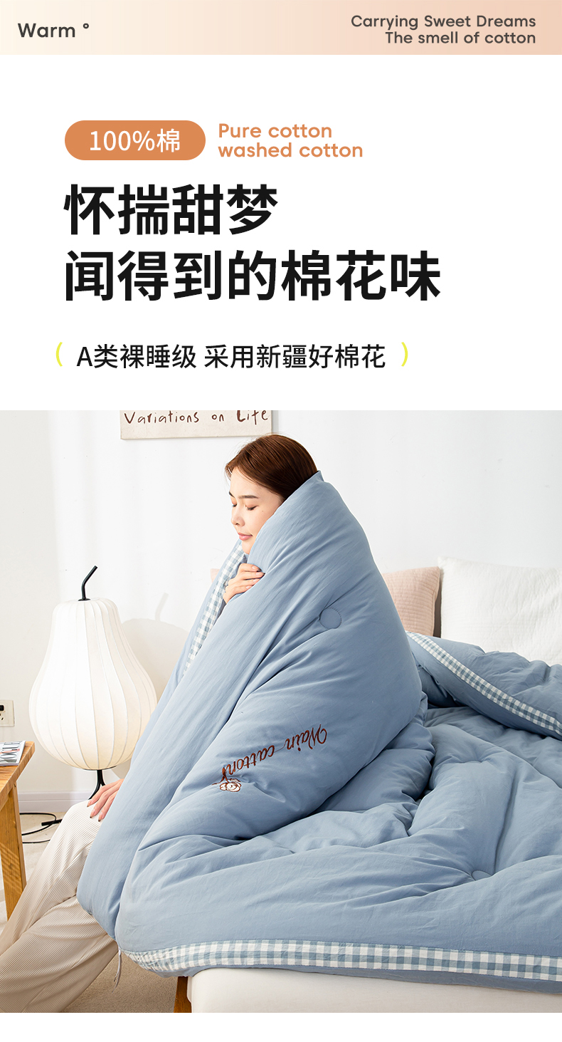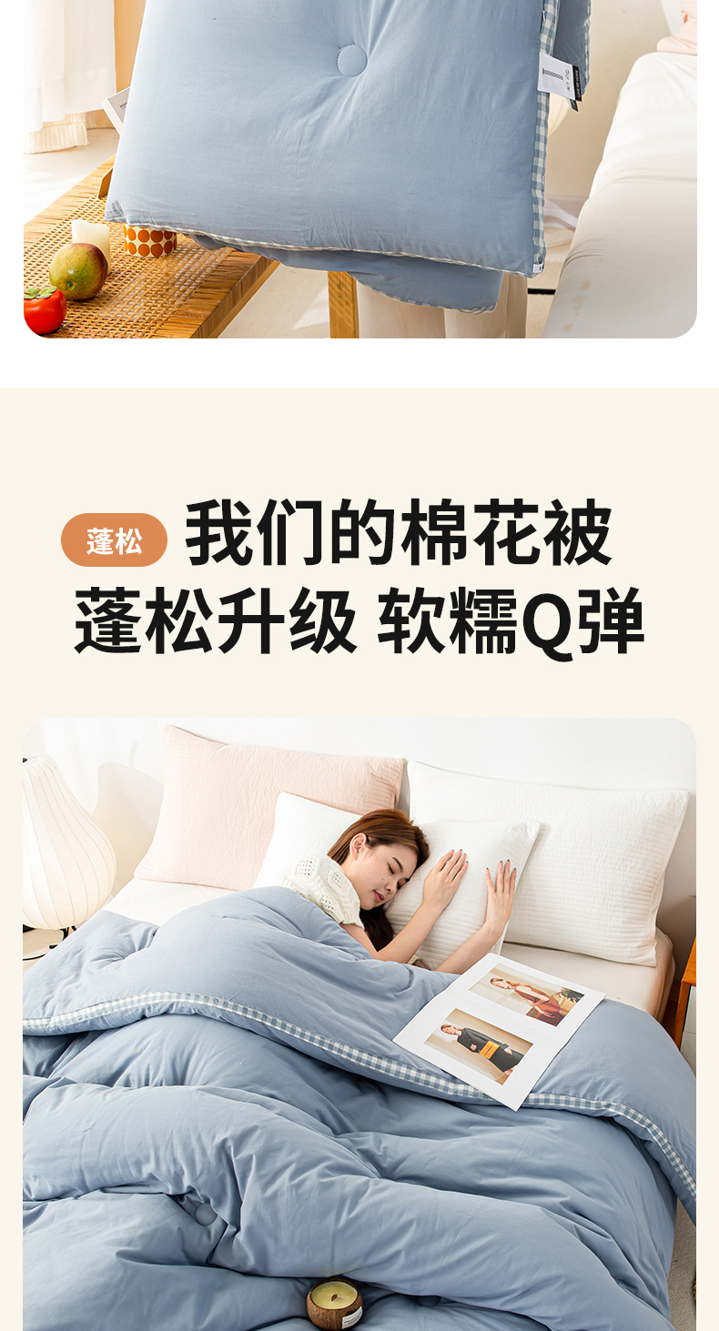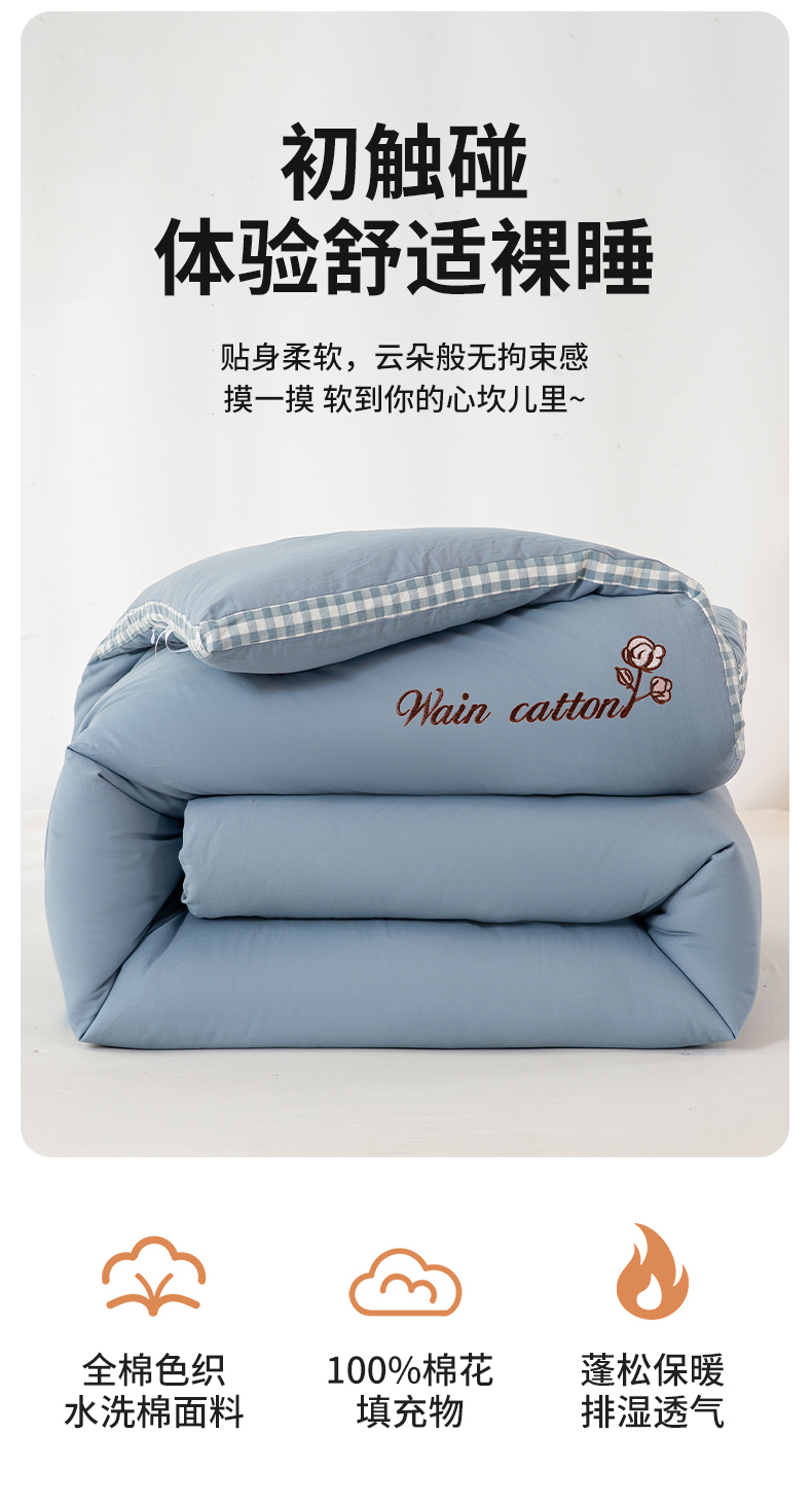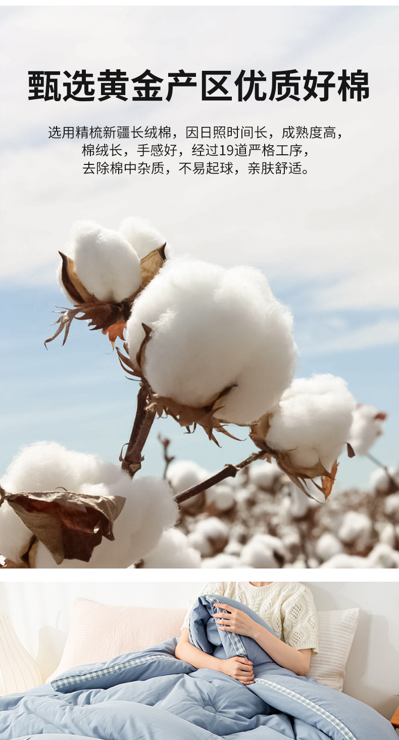 • 91家纺网 家纺一手货源 找家纺 (总)鸣升家纺 2025新款新款新疆长绒棉100%棉花被春秋被冬被被子被芯立体棉被直播四季被,经典蓝,素雅白,雾灰