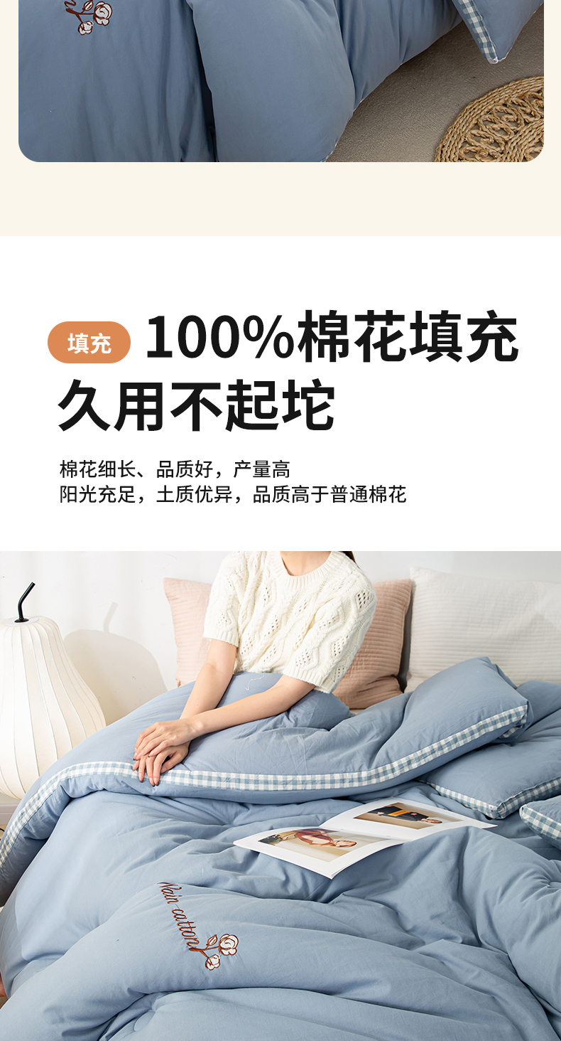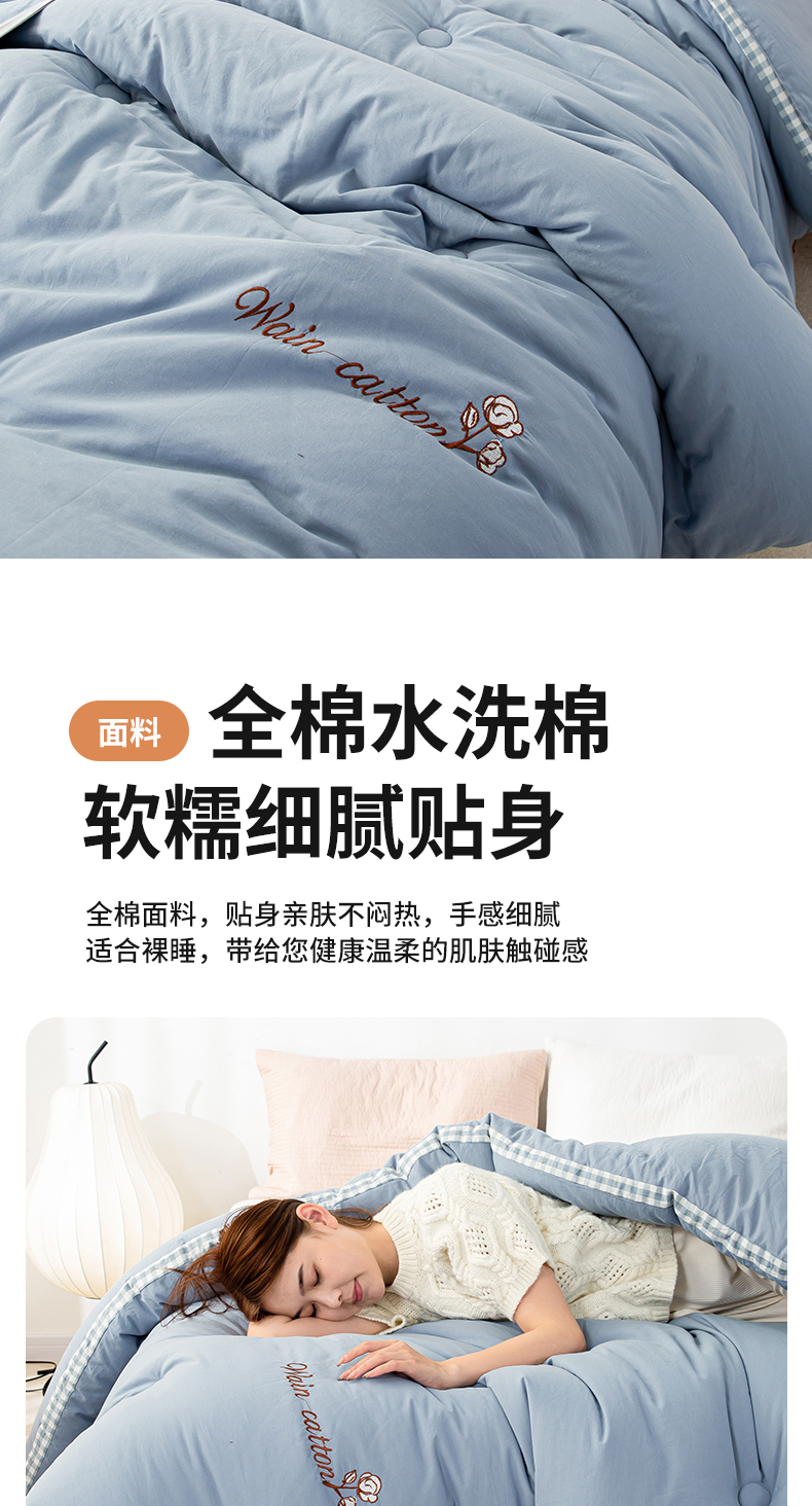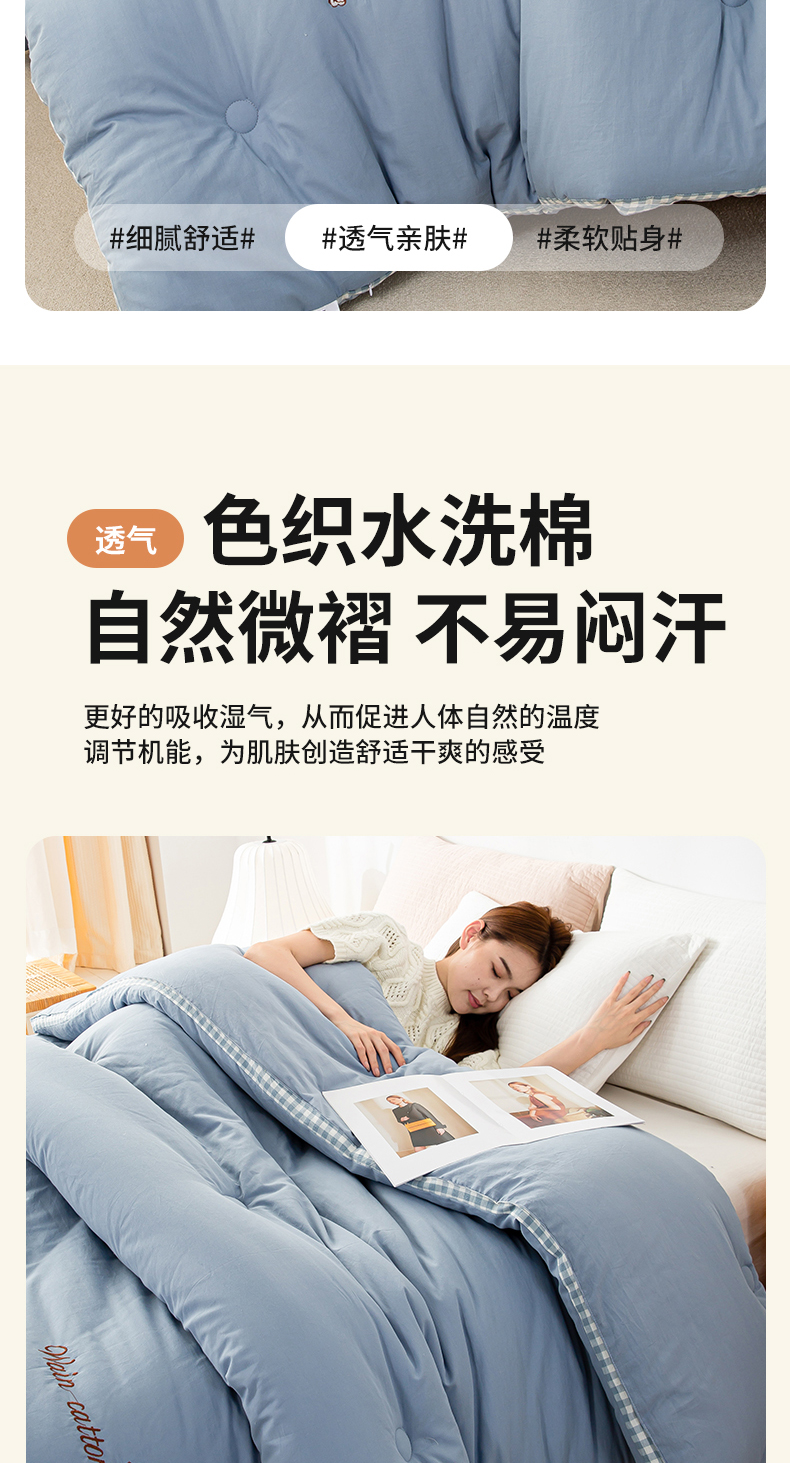 • 91家纺网 家纺一手货源 找家纺 鸣升 23新款棋盘格全棉花被色织水洗棉100%冬被被子 棋盘格-浅蓝