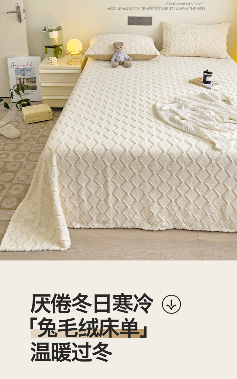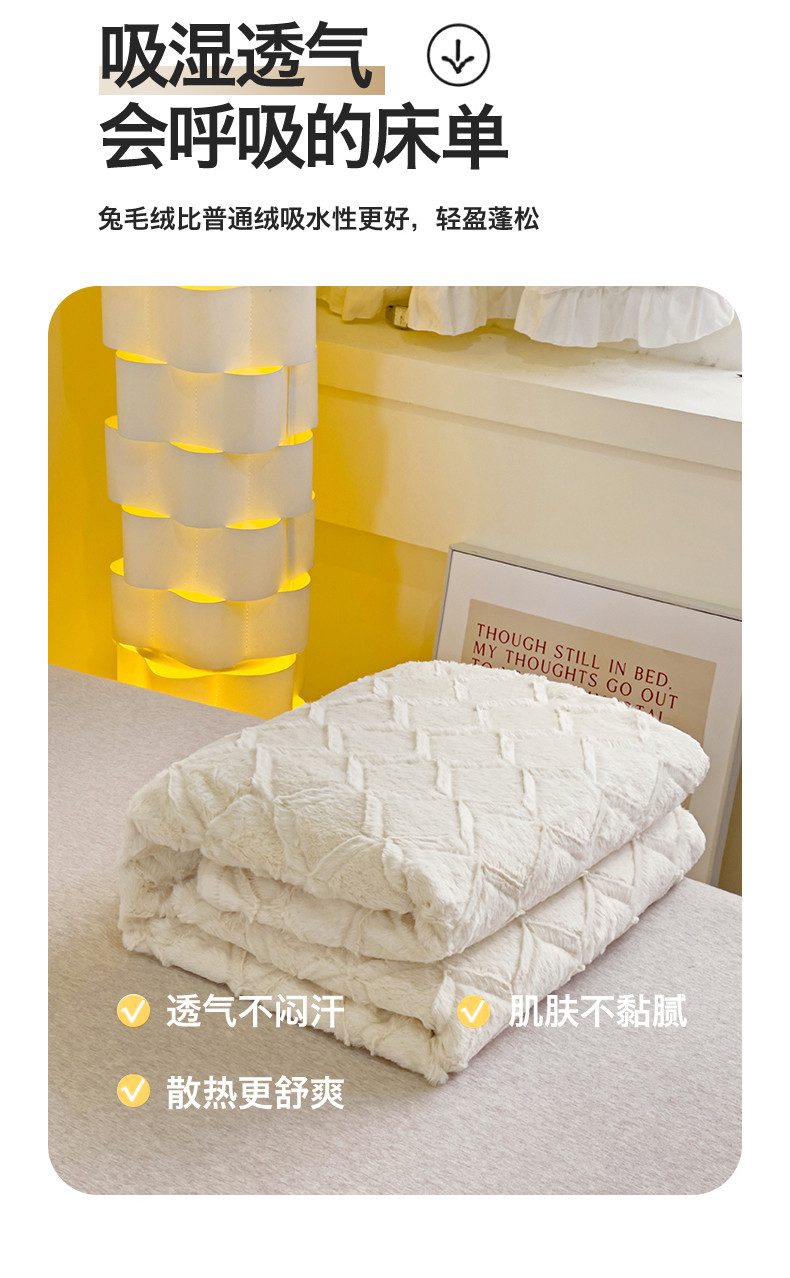 • 91家纺网 家纺一手货源 找家纺 名兮 2023新款兔毛绒床单 波浪-白