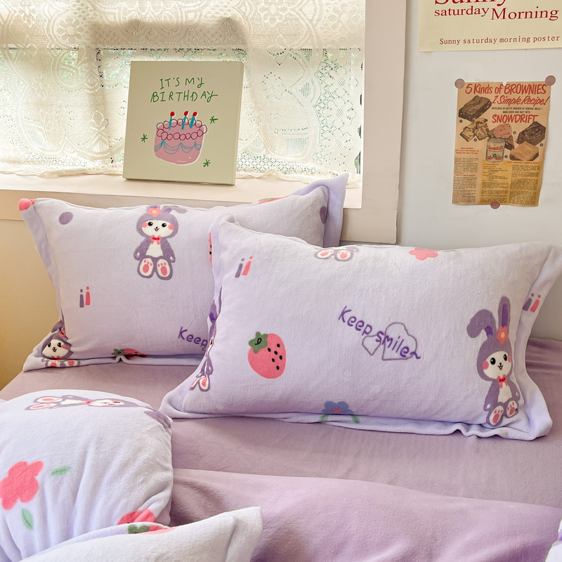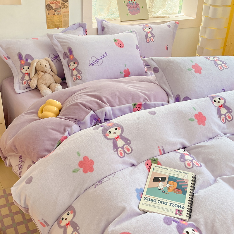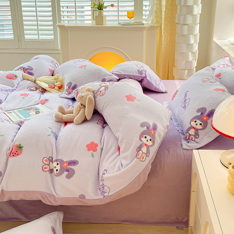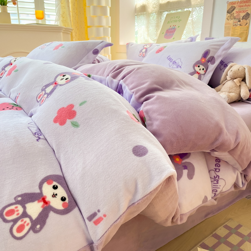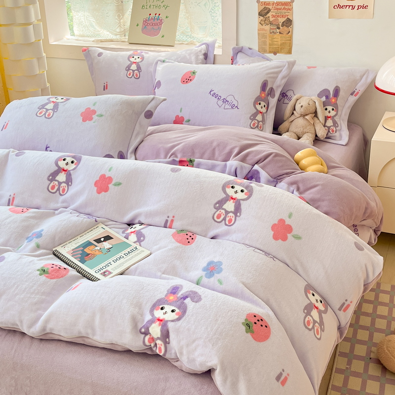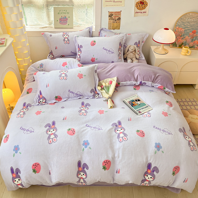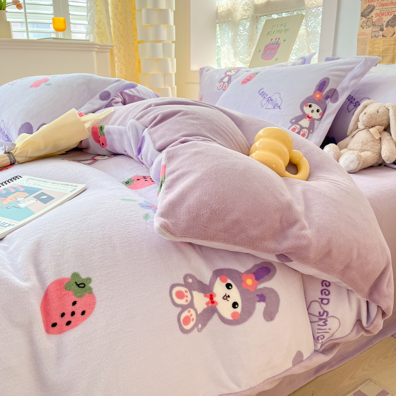 当前位置: 91家纺网 > 商品网购 > 床品套件 > 四件套 > 牛奶绒四件套 > 丝羽坊 2023新款加厚小清新牛奶绒印花四件套单被套 草莓兔