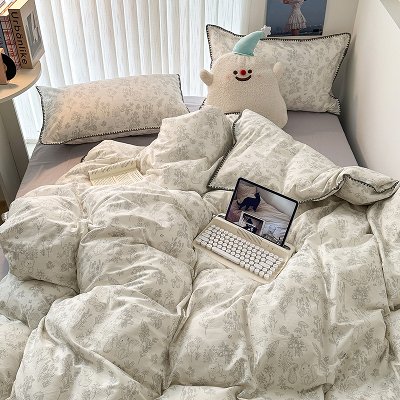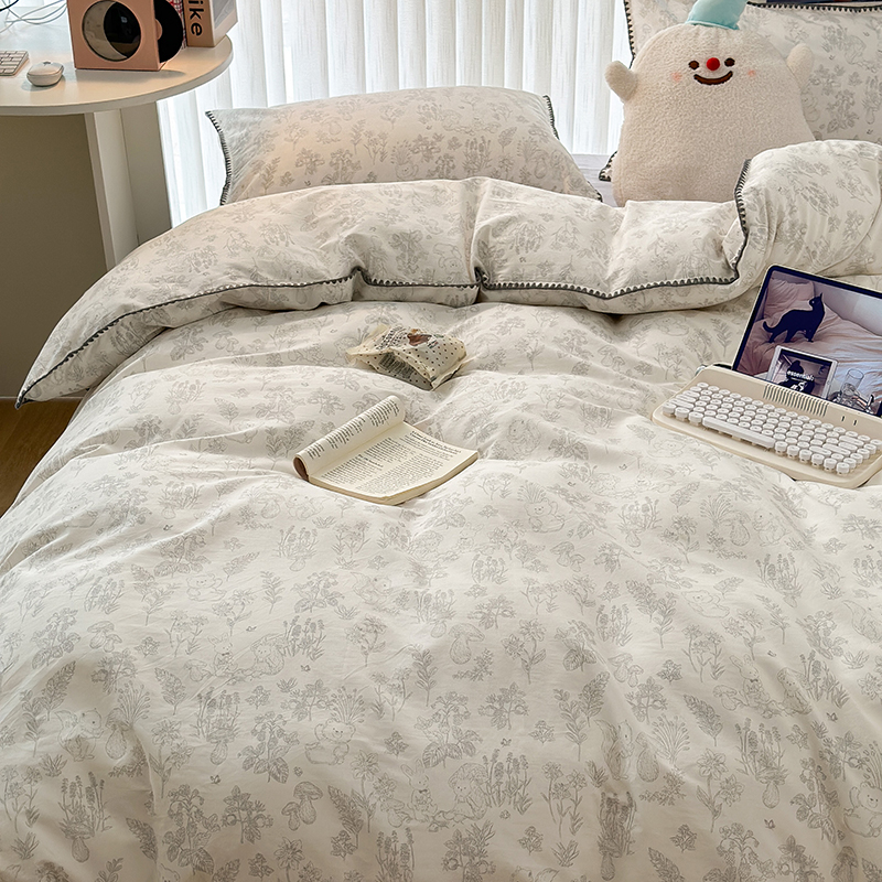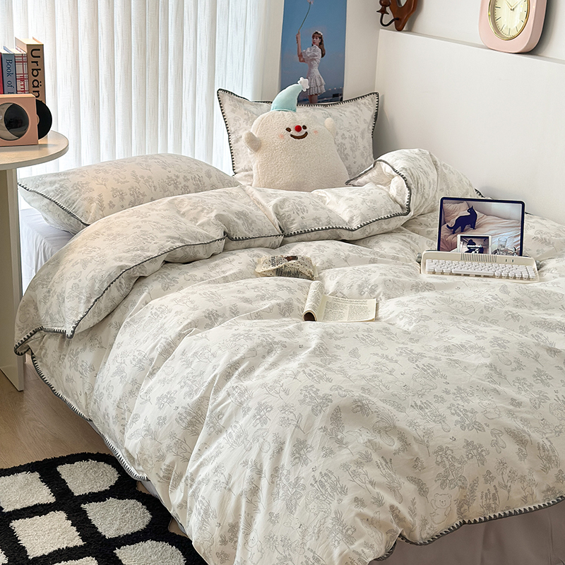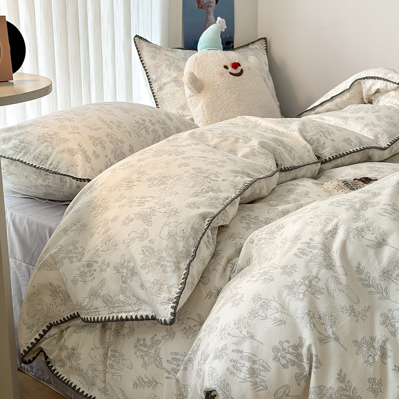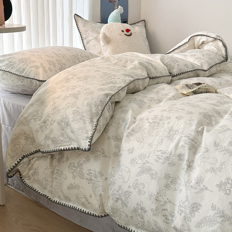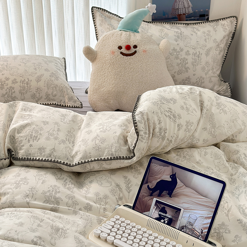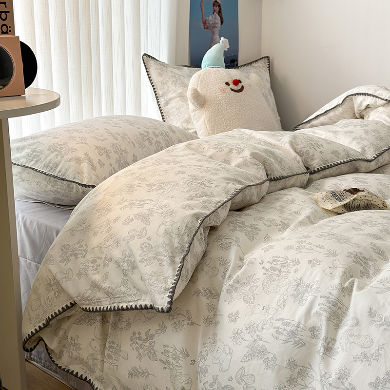 商品名称:2023新款全棉印花贝壳三角针四件套 素描小卡通灰