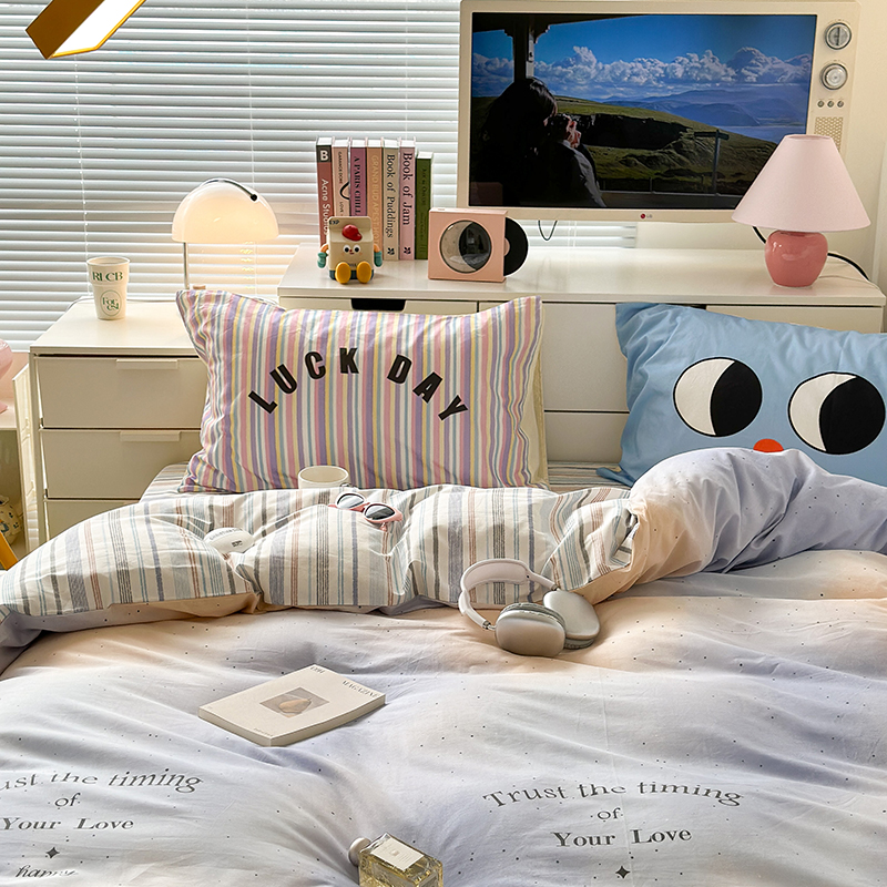 (总)昔可 2023新款学生季卡通普通款四件套,彩色气球熊,彩条恐龙,憨憨熊,花蜜小兔,蘑菇兔,圈圈草莓,蔬菜小兔,郁金香小萌狗