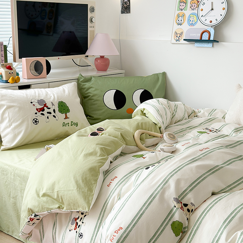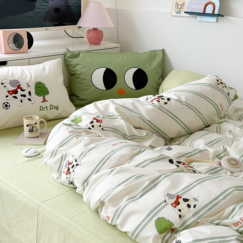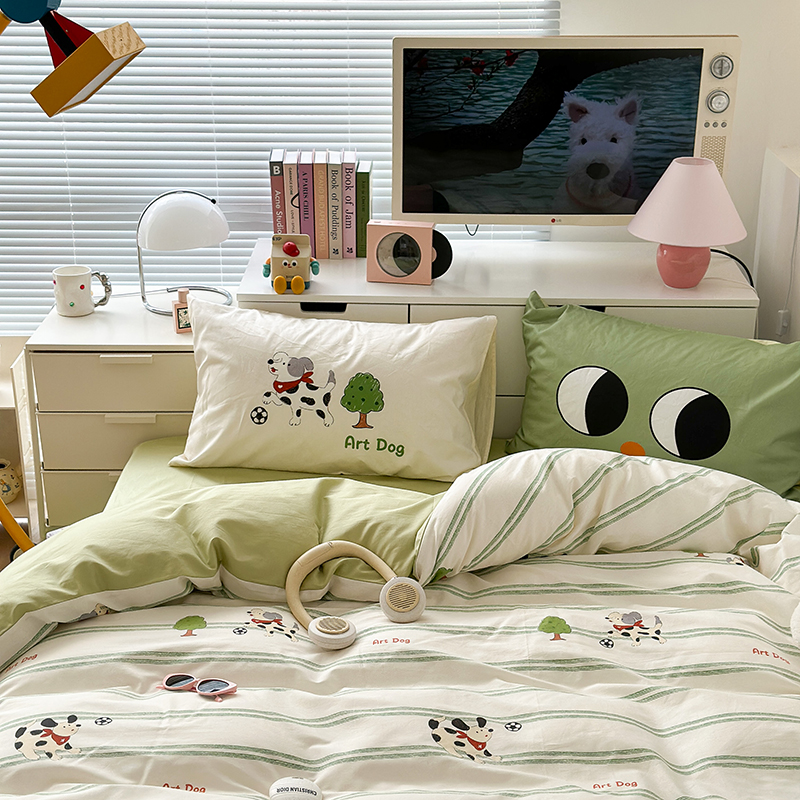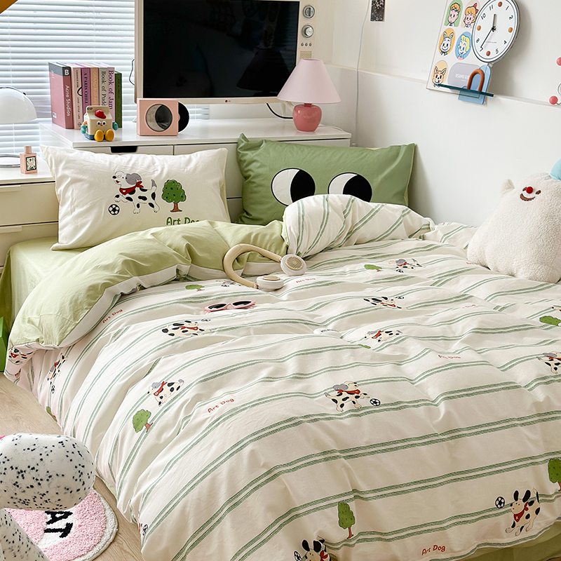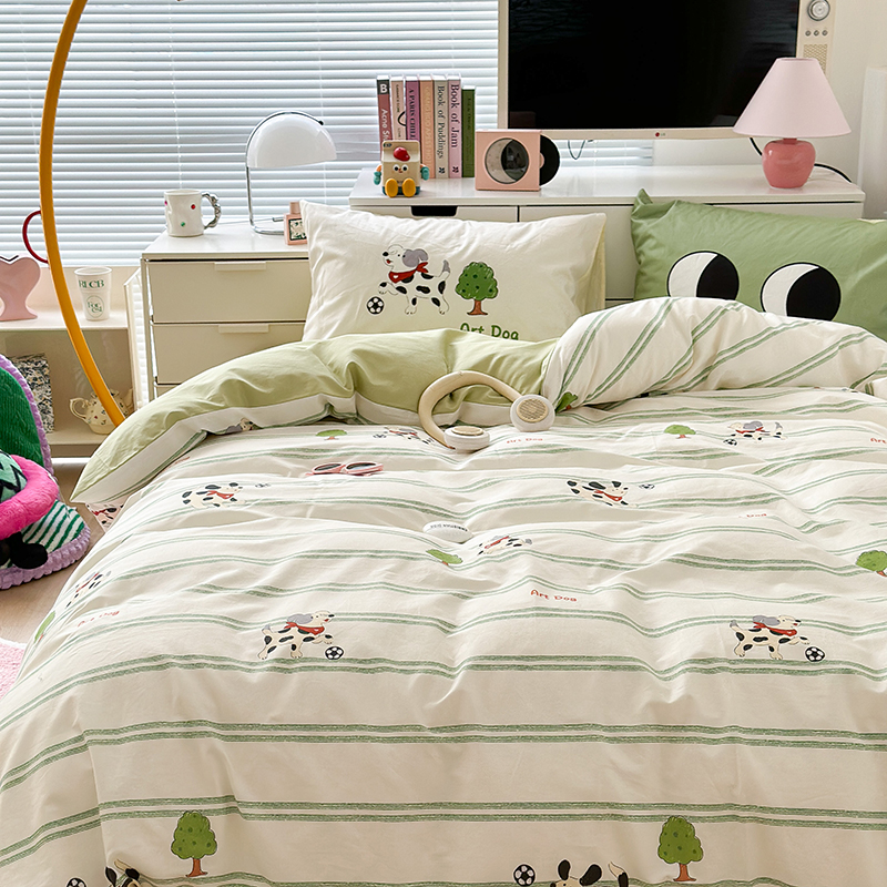 商品名称:昔可家纺 2023新款全棉大版数码枕套四件套 绿条狗狗