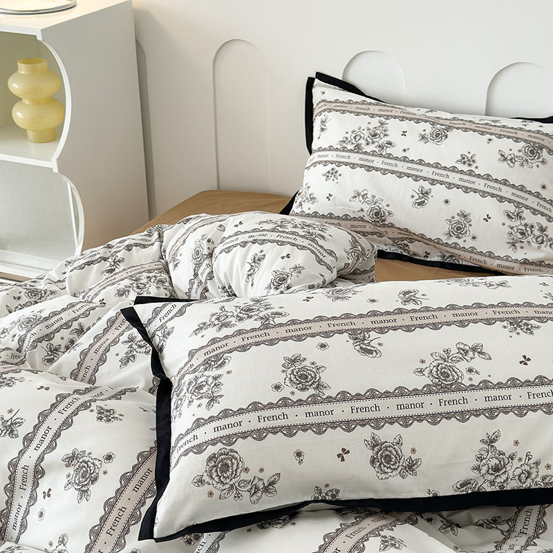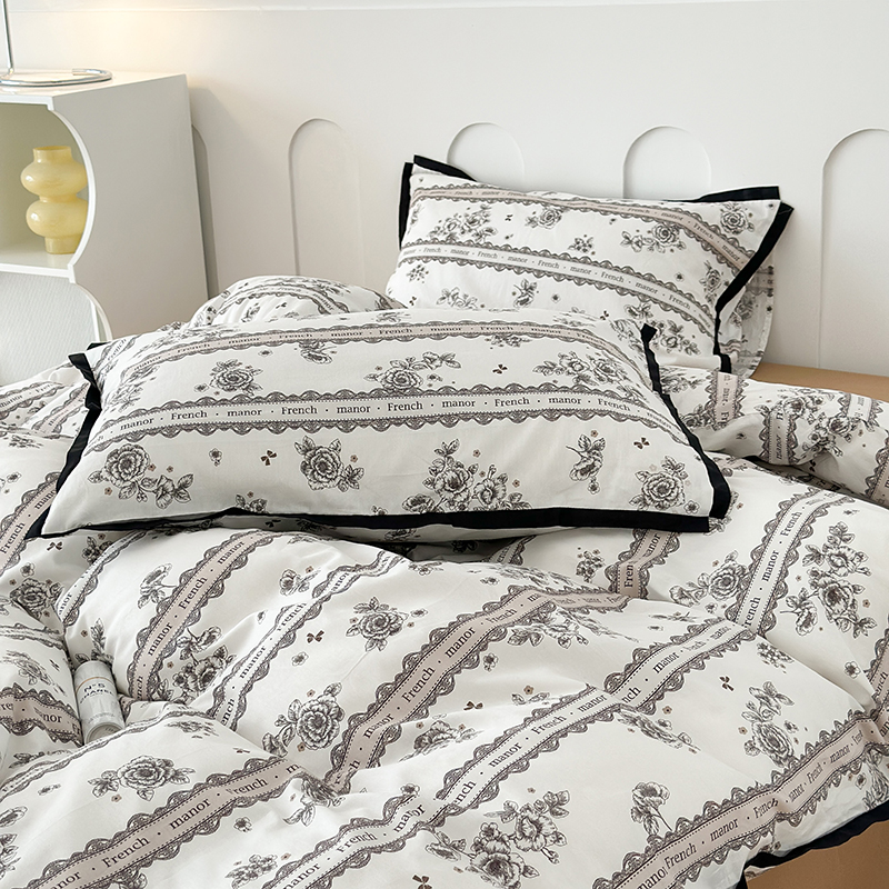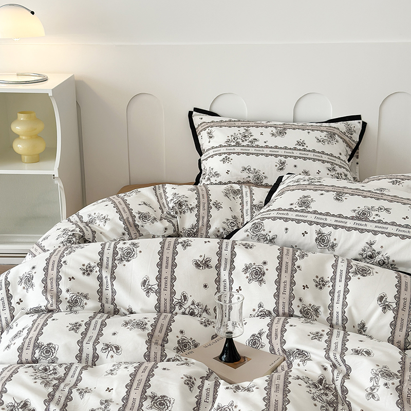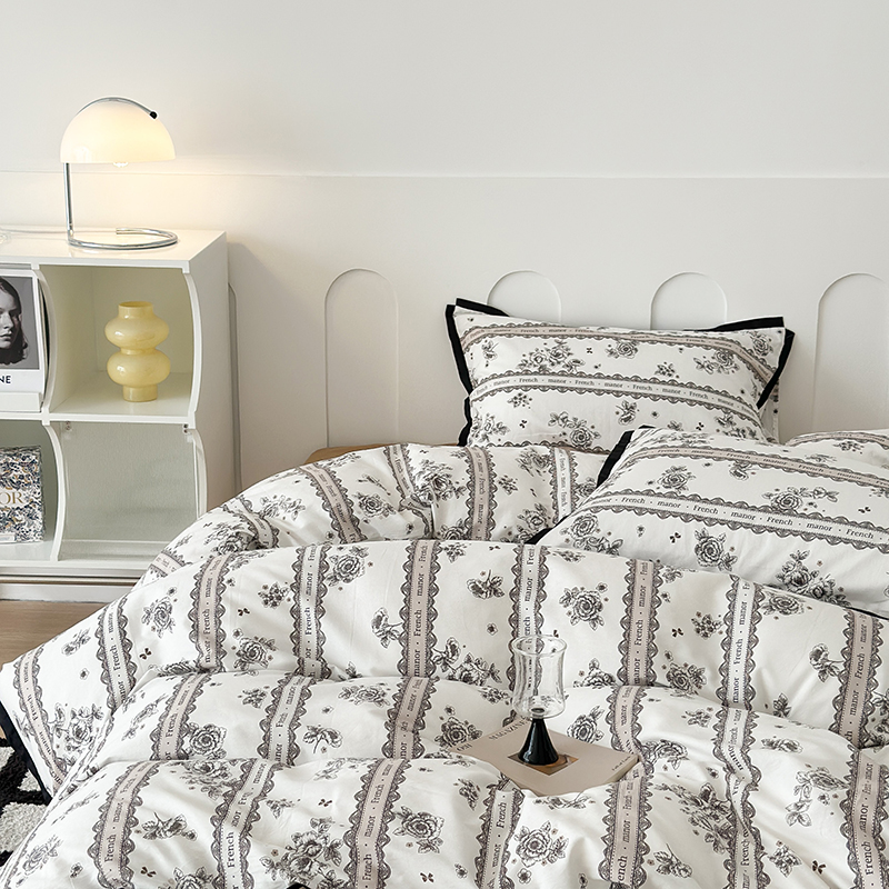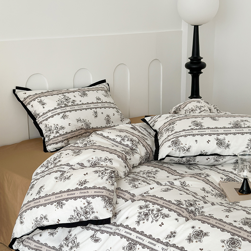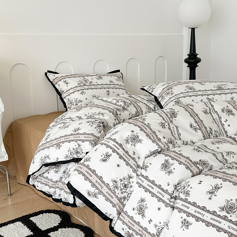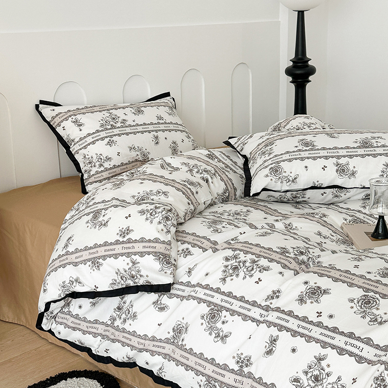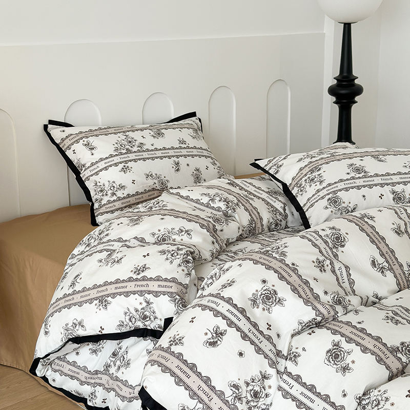 昔可家纺 2023新款全棉复古风黑花边四件套(风格二) 暗夜巴黎