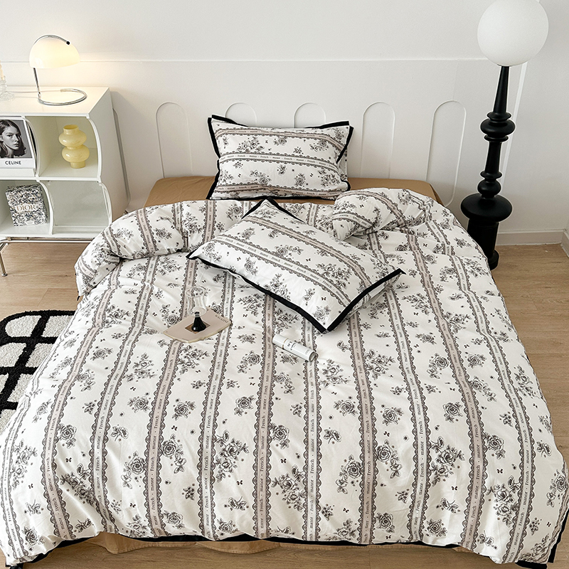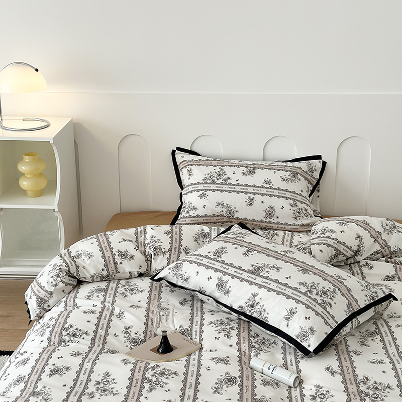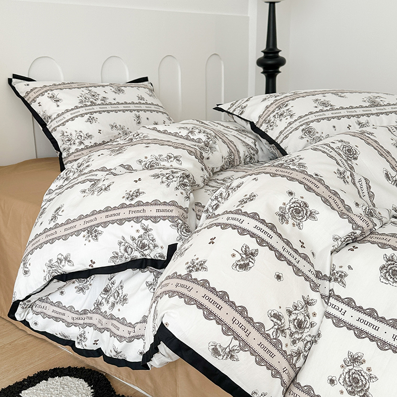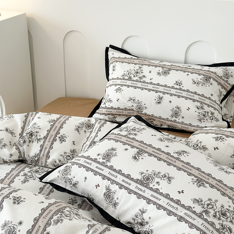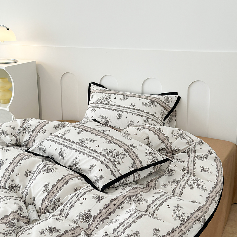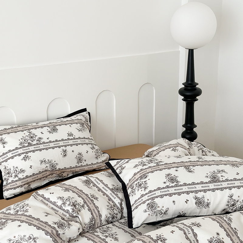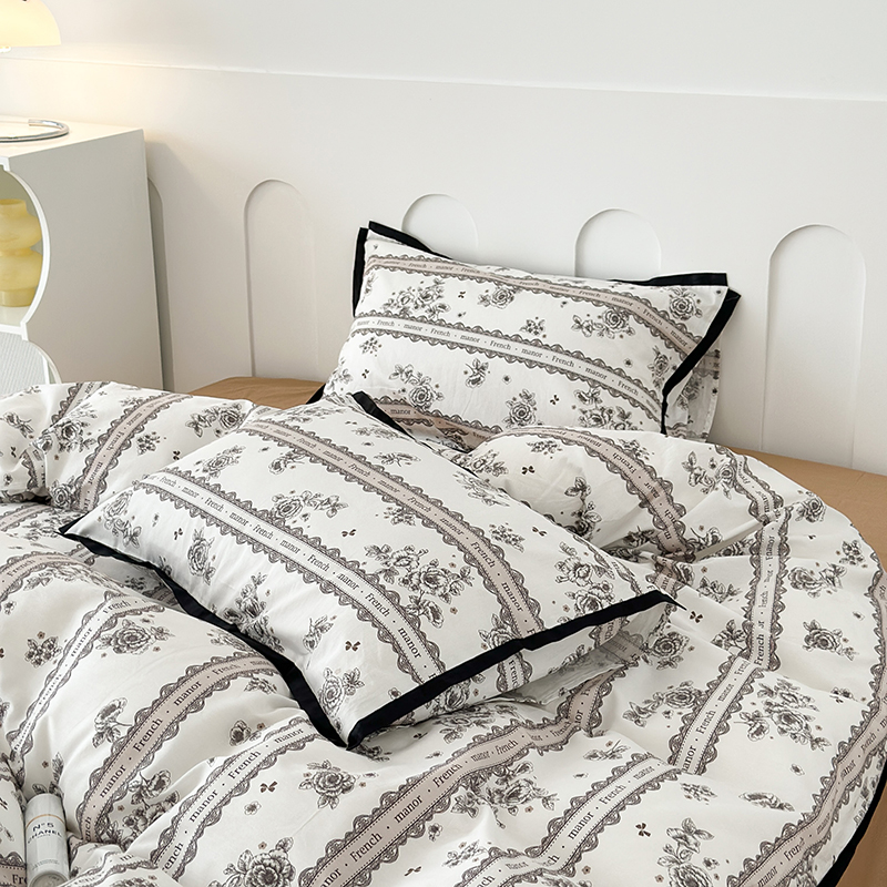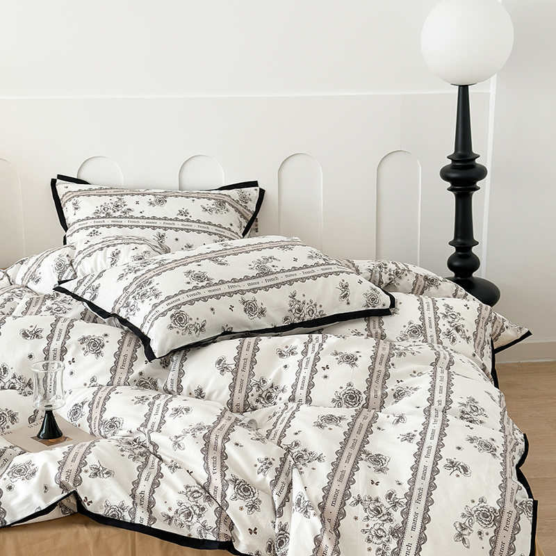 昔可家纺 2023新款全棉复古风黑花边四件套(风格二) 暗夜巴黎