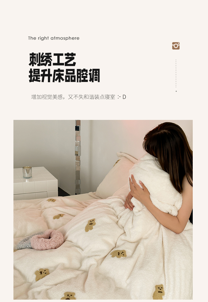 萝莉家纺 2023新款冬季加厚软绵绵的泰迪绒美丽绒毛巾绣牛奶绒四件套 可爱熊