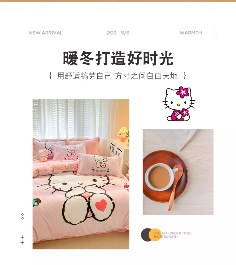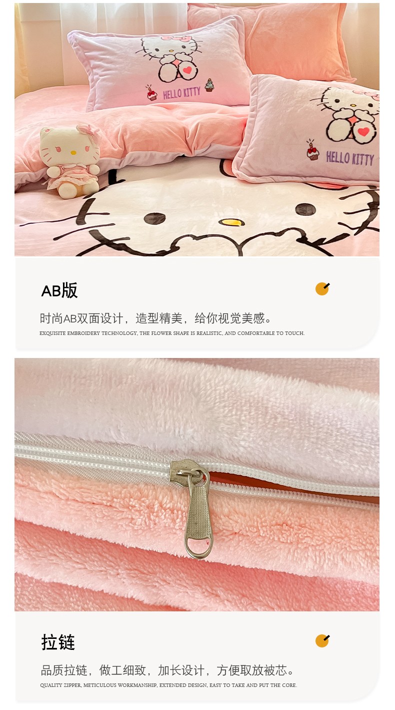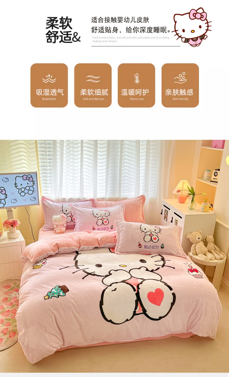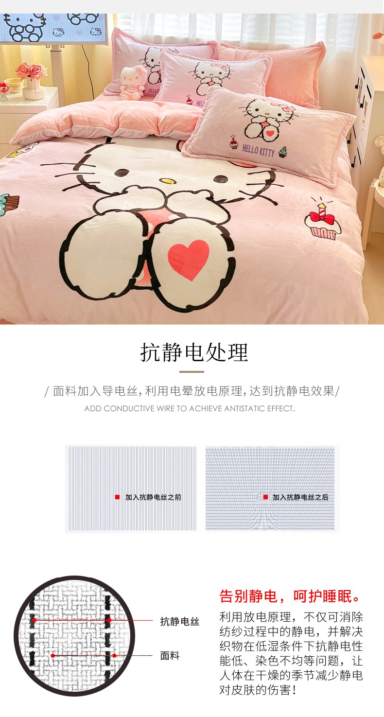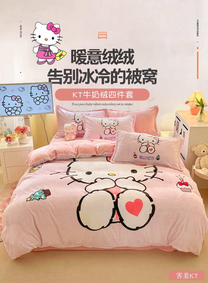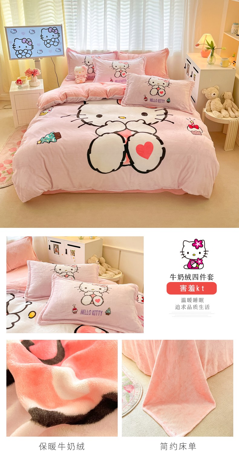 当前位置: 91家纺网 > 商品网购 > 床品套件 > 四件套 > 牛奶绒四件套 > 金爱家 2023新款kt猫大阪加厚牛奶绒系列四件套 害羞kt