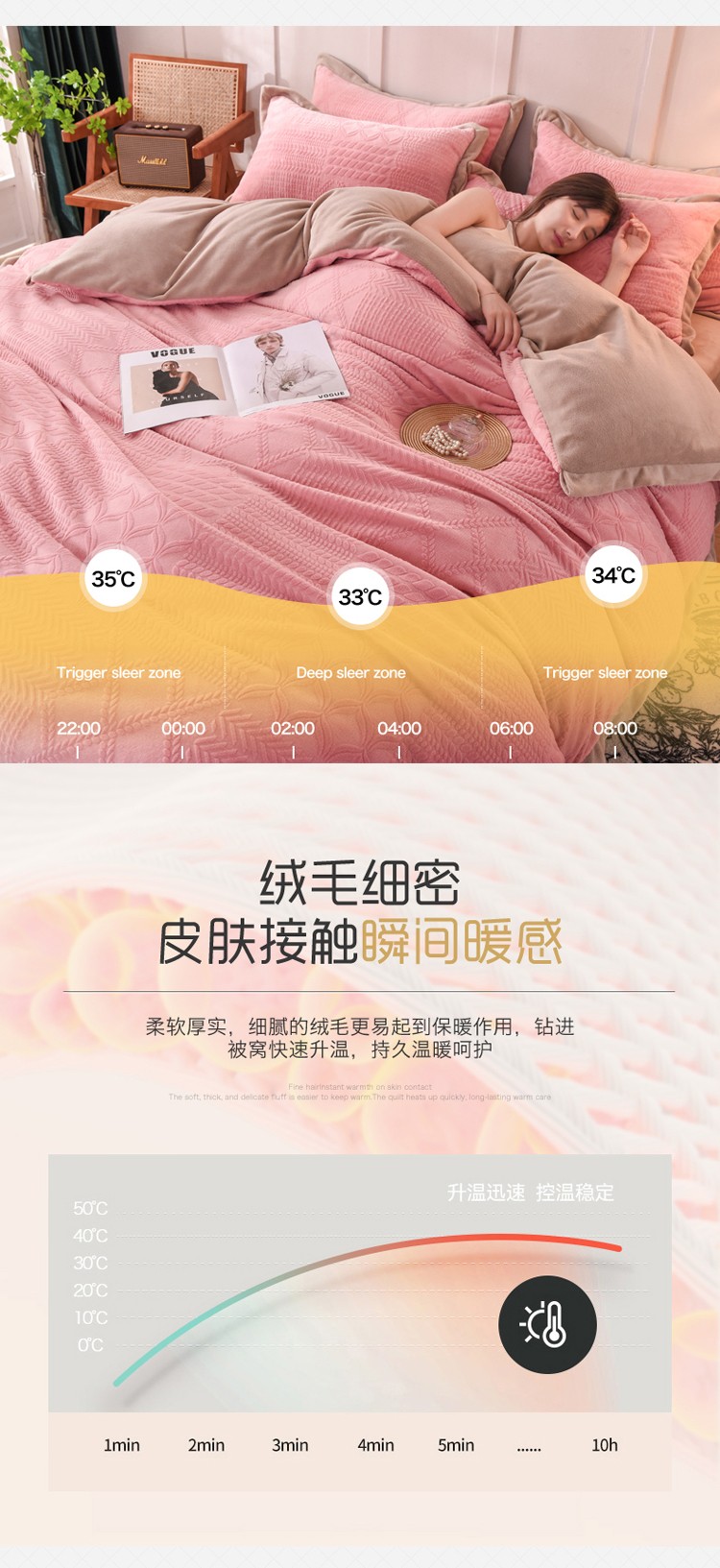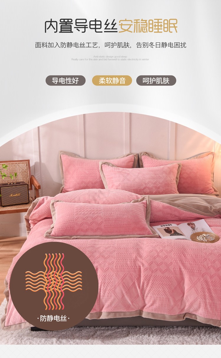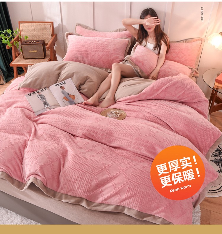 商品名称:欧冠 2023秋冬新款唯爱雕花A版260克牛奶绒四件套-相机款 唯爱-深粉