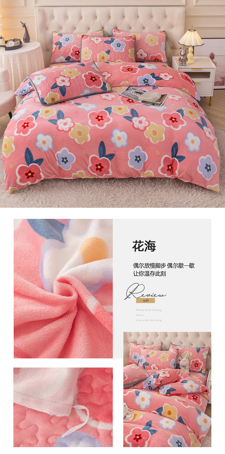 商品名称:梓依家纺 2023新款牛奶绒床盖款四件套 花海
