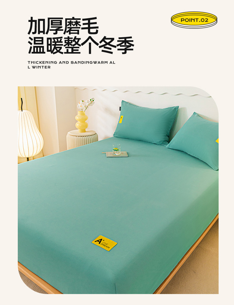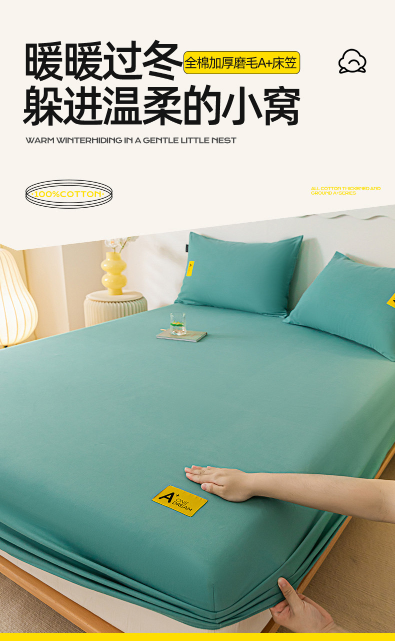蓝米卡夫 2024秋冬全棉加厚磨毛A+单床笠三件套 A+叶青绿CL