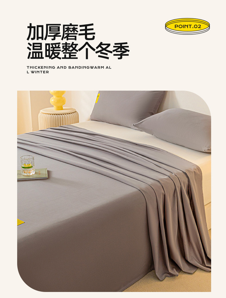 蓝米卡夫 2024秋冬全棉加厚磨毛A+单床单三件套 A+爵士灰CD