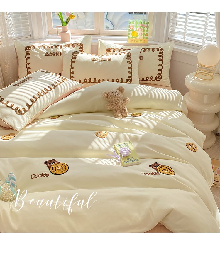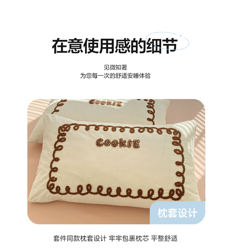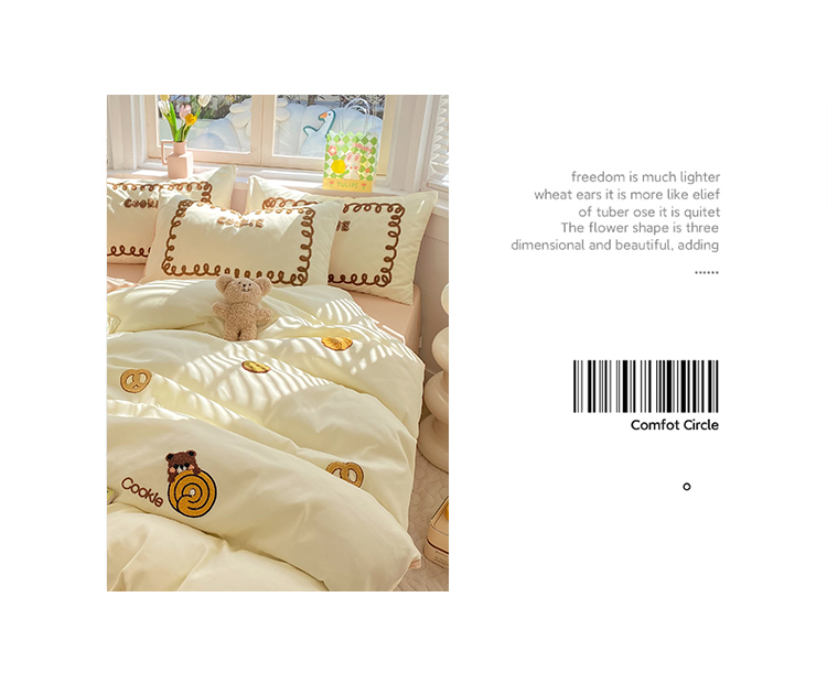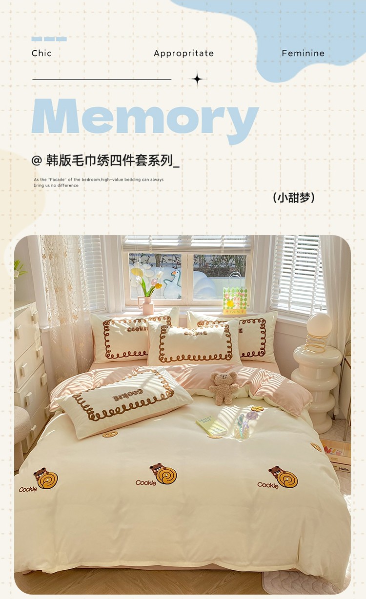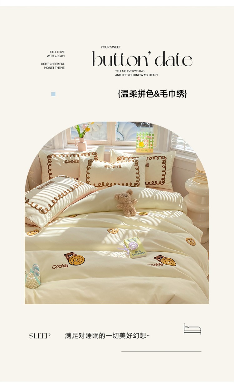 商品名称:欧冠 2023新款秋冬保暖专版水洗棉麻毛巾绣四件套 曲奇